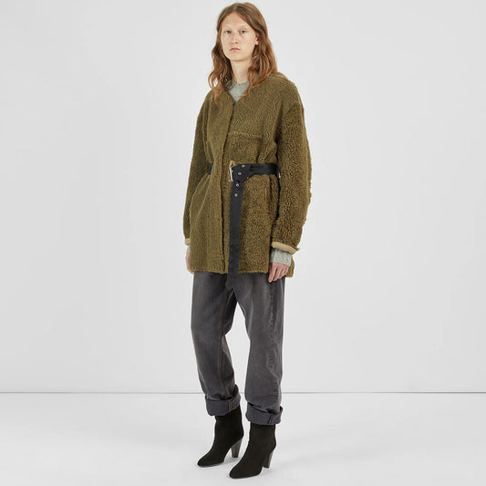 Tibi "Cameron" Suede & Faux Shearling Sandal in Navy, size 37.5