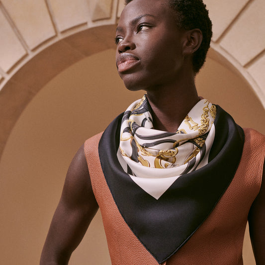 Hermes "Brides de Gala" 90cm Scarf in noir / crème / gold