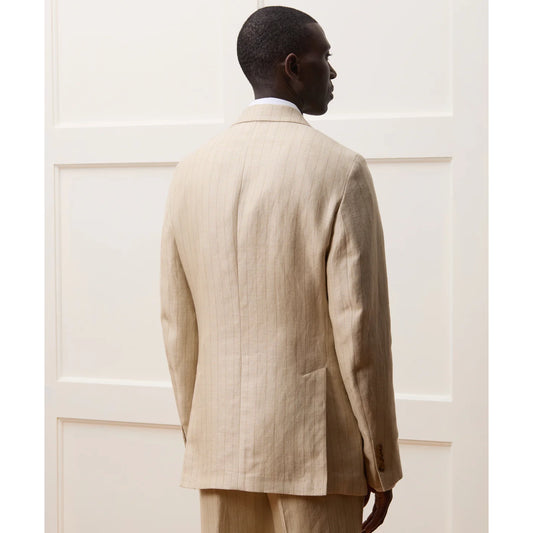 Todd Snyder "Sutton" Italian Linen-Silk Jacket in Tan Pinstripe, size 42R