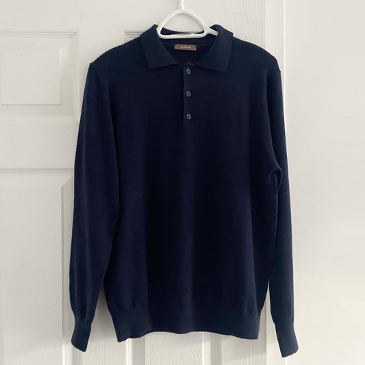 Nodus Navy Merino Wool Polo Neck in Navy, size Large