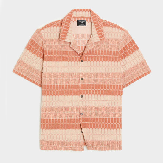 Todd Snyder Tile Terry Jacquard Polo Shirt in Warm Peach, size Medium