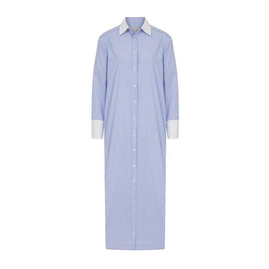 Anim "Mila" Striped Poplin Maxi Dress in Blue/White, size Small
