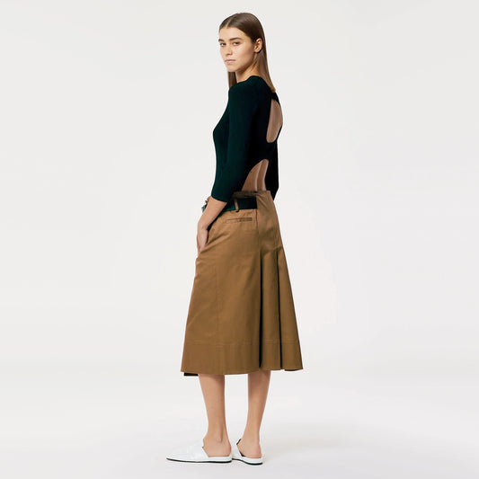 Tibi Chino Wide Pleat Wrap Skirt in Caramel, size 12