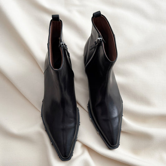 Sartore Pointed Toe Boots with Studded Sole in Black, size 37