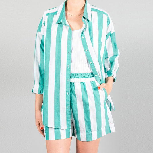 Xirena "Caysen" Striped Cotton Shorts in Julep Green, size Small