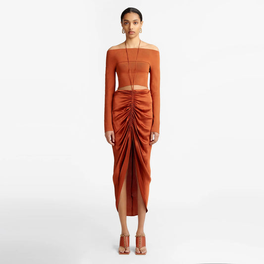 Dion Lee Jupe en satin froncée sur le devant, taille 12AUS/taille 8US