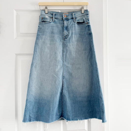Mother "Circle Midi Fray" Denim Skirt in "Crossroads", size 27