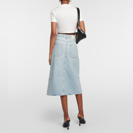 Mother Denim "A Step Midi" Denim Skirt in "Misbeliever", size 26
