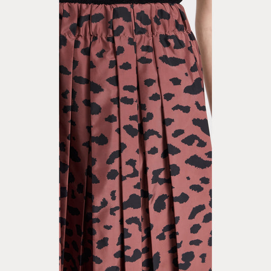 Recycled Sporty Nylon Cheetah Pleated Pull On Skirt in Brown, size Medium