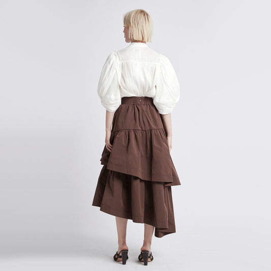 AJE Tiered Midi Skirt in Brown, size 8US/12UK