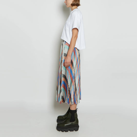 Sacai Pleated Wrap Midi Skirt in Multicolour Plaid, size "1" (fits Size Small ish)
