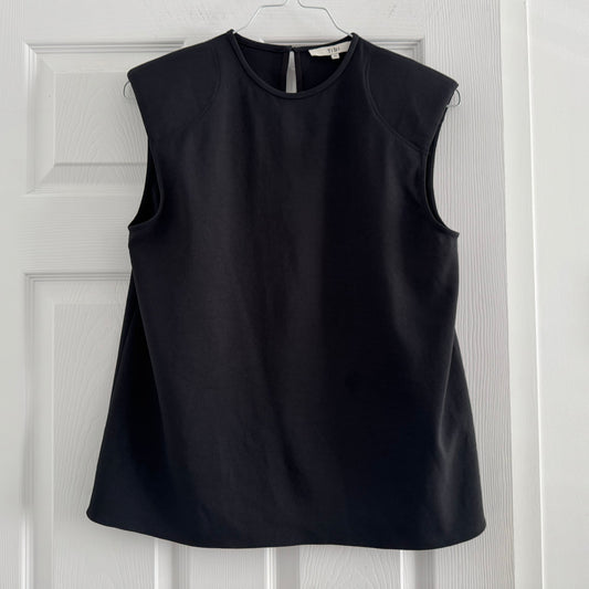 Tibi Chalky Drape Shoulder Pad Top in Black, size Medium