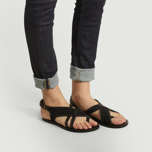 Soeur Canvas/Leather Strappy Sandals in Black, size 41 (fits size 10)