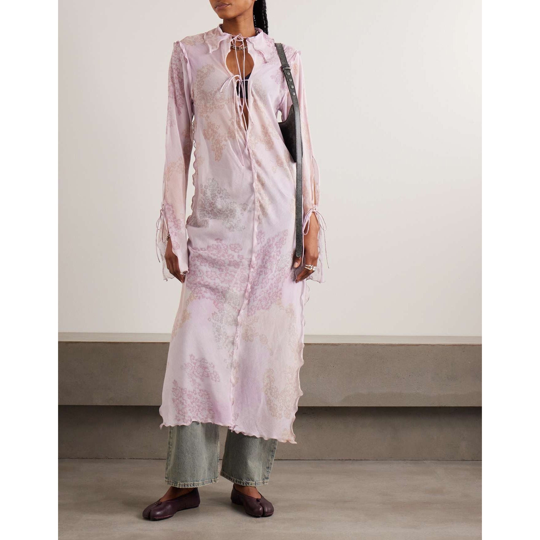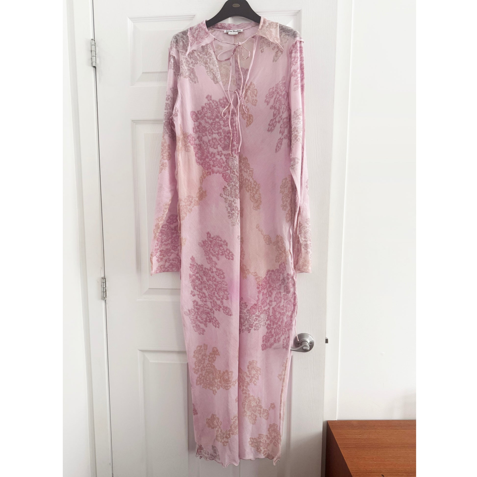 Acne Studios Chiffon Printed Maxi Dress in Pink, size 34