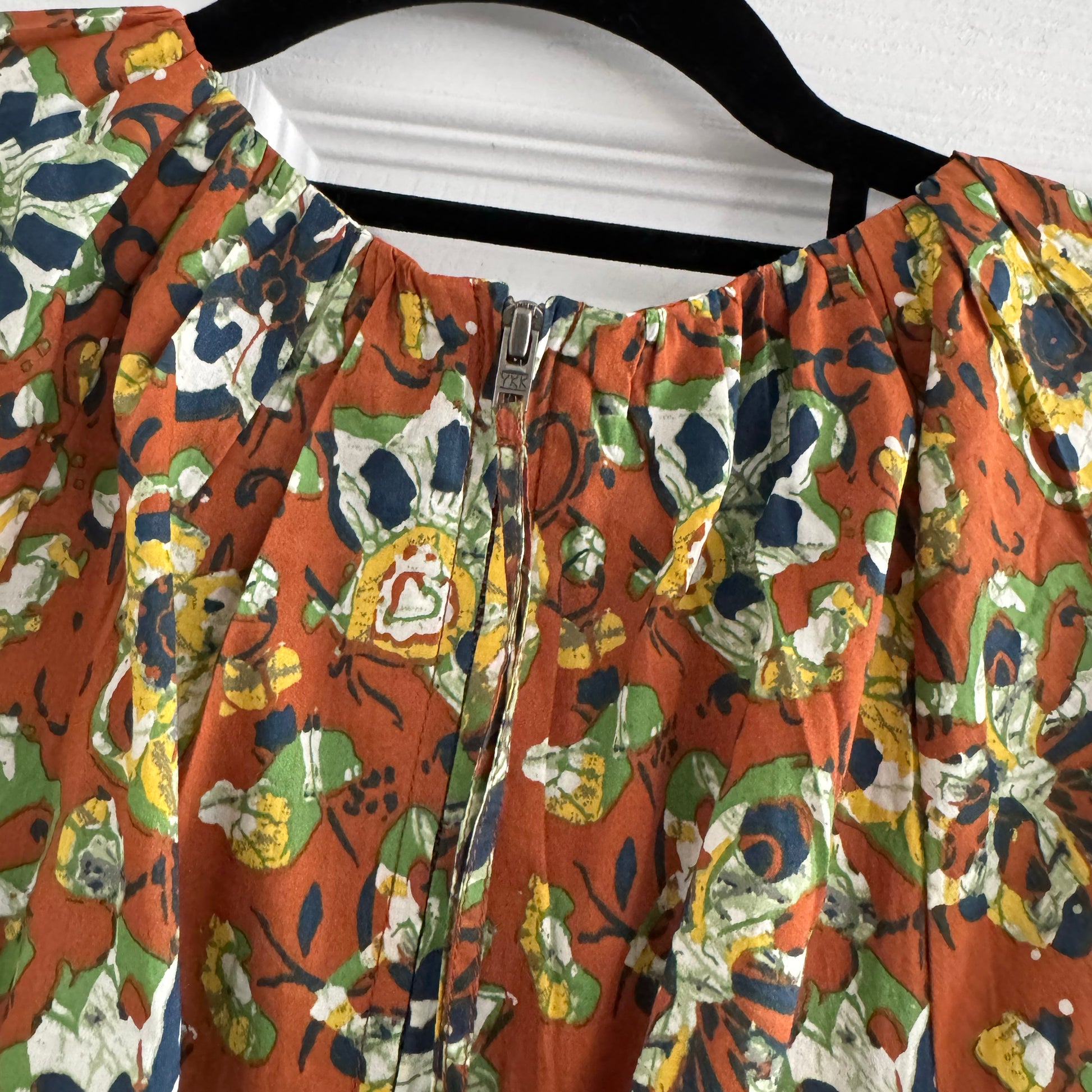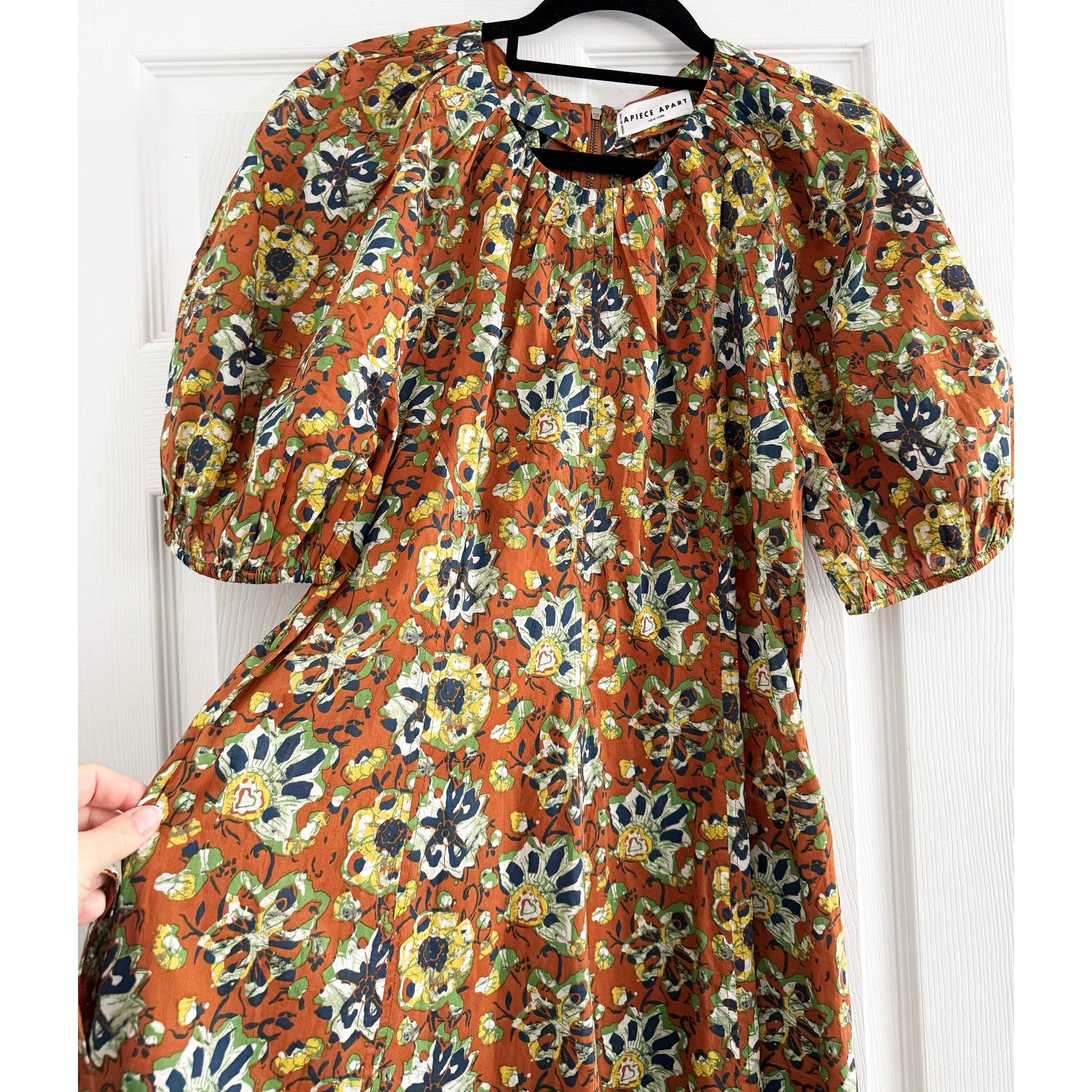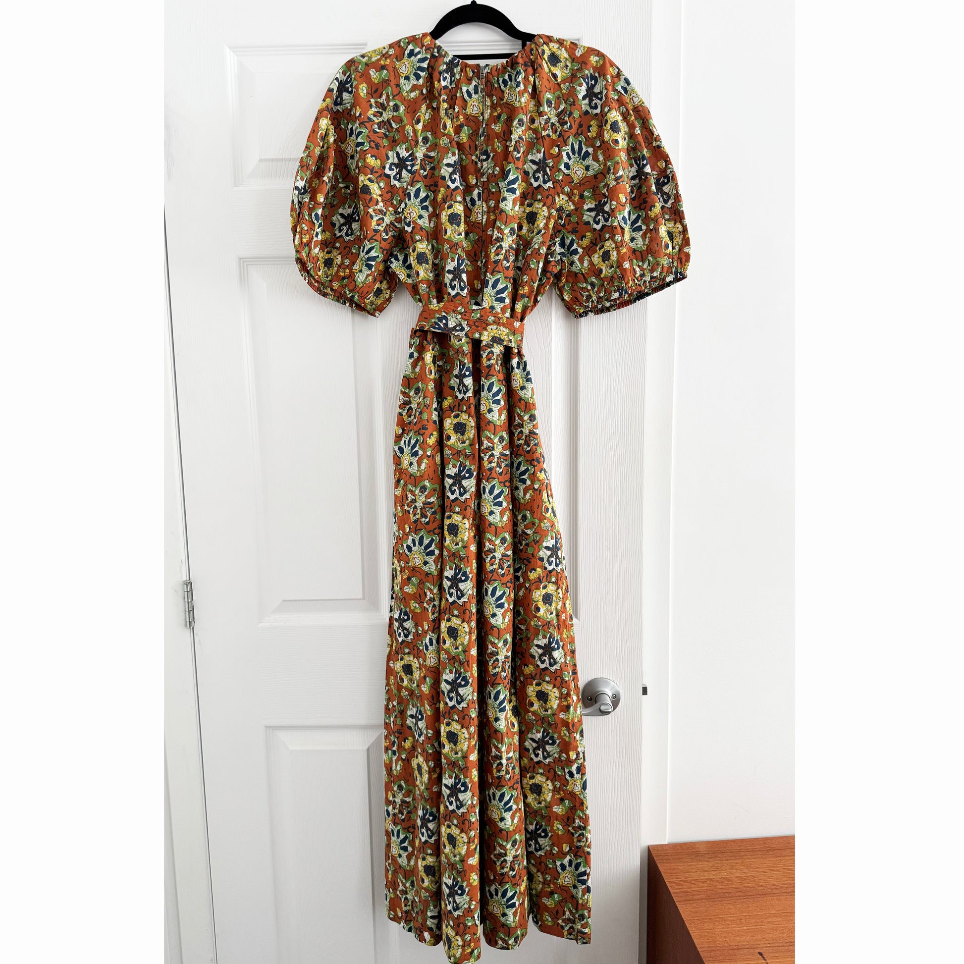 Apiece Apart "Antonella" printed maxi dress in batik floral bronze, fits size 10??