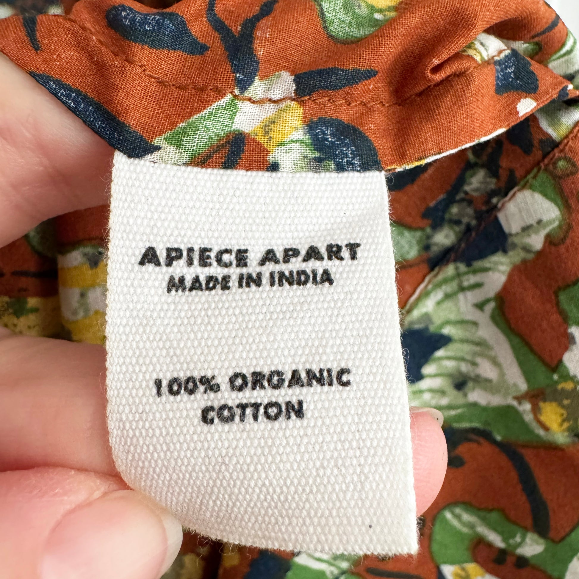 Apiece Apart "Antonella" printed maxi dress in batik floral bronze, no size tag but fits size 10 or so?? So chic, so elegant - this midi dress is gorgeous for warm temps (and transitional temps if you have a perfect pair of brown boots!). Wear it cinched at the waist with the matching belt, or not, depending on the mood of the day. Zip back closure. 20 inches armpit to armpit. 17 inches flat across at the waist. 55 inches in length. 100% cotton. In excellent condition, except for the missing size tag. Originally $685CAD, and selling here for $225CAD!