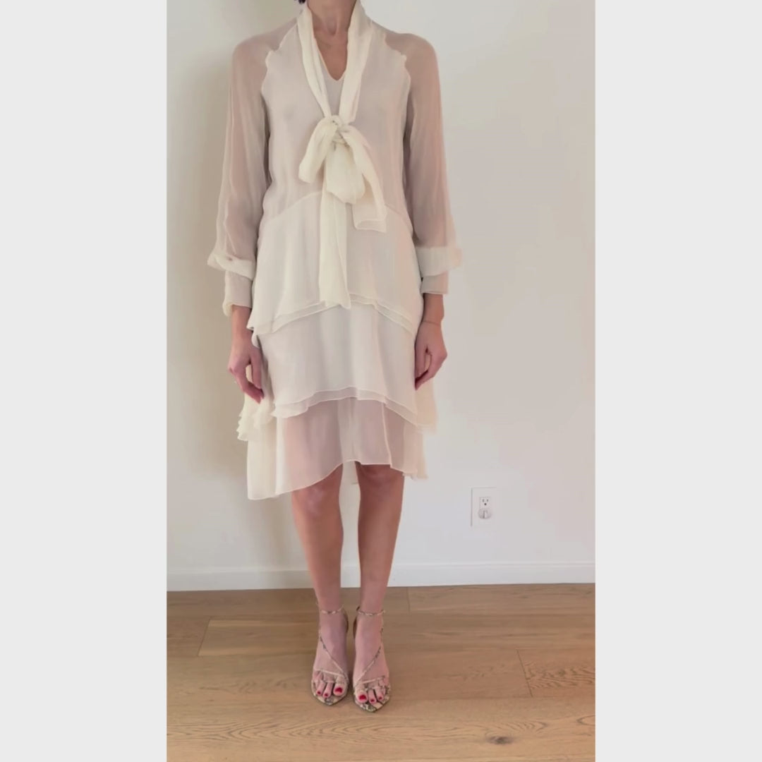 Chloe Ivory Silk Chiffon Dress, size 38 (fits like a US size 4)