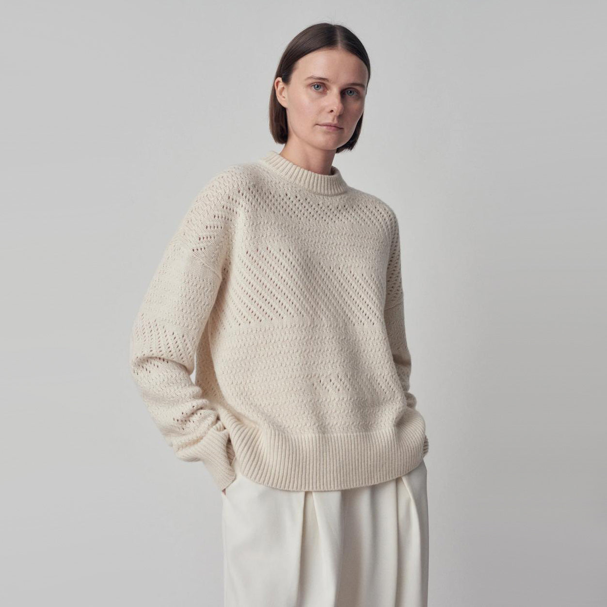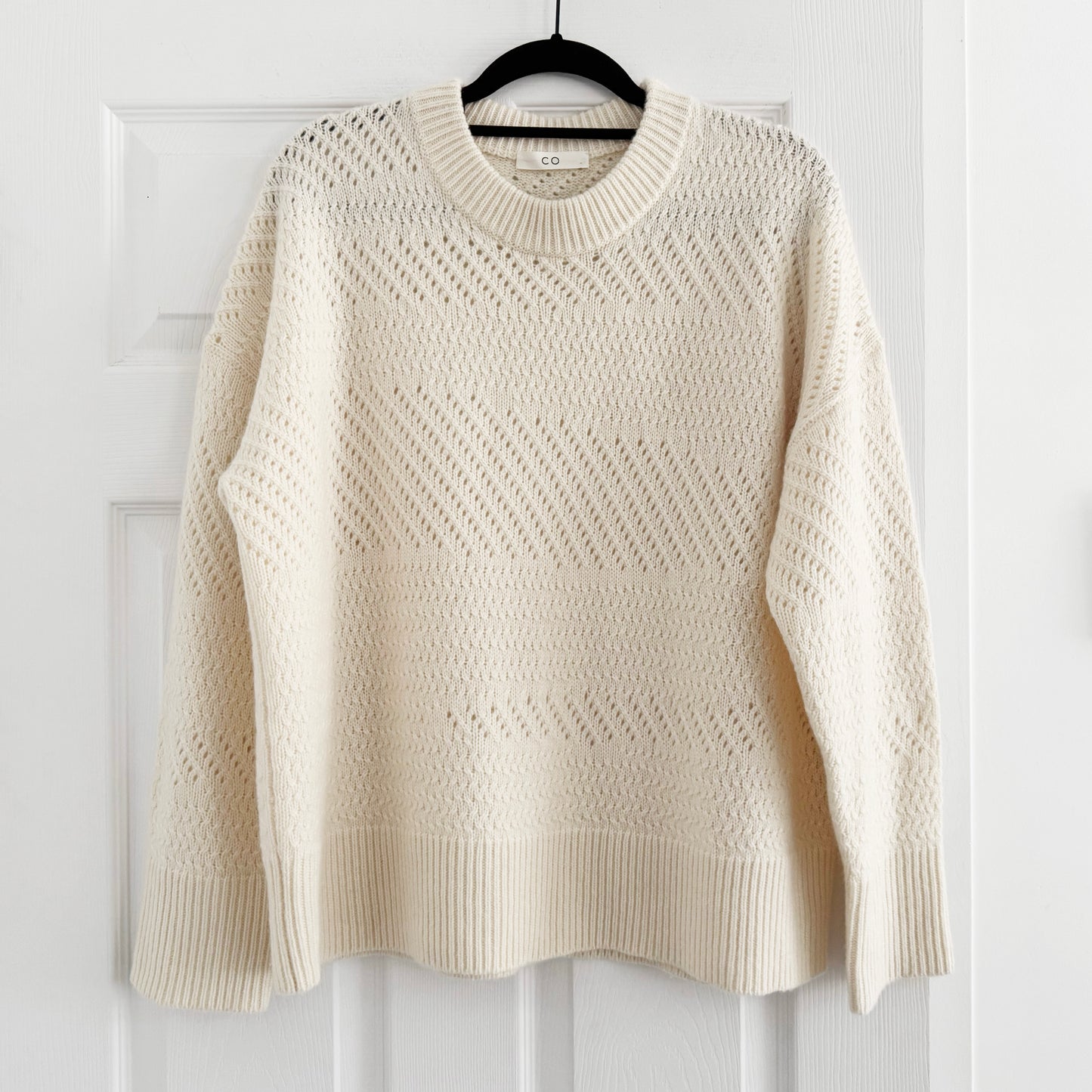 CO Cashmere Crew Neck Sweater in Ivory, size Large