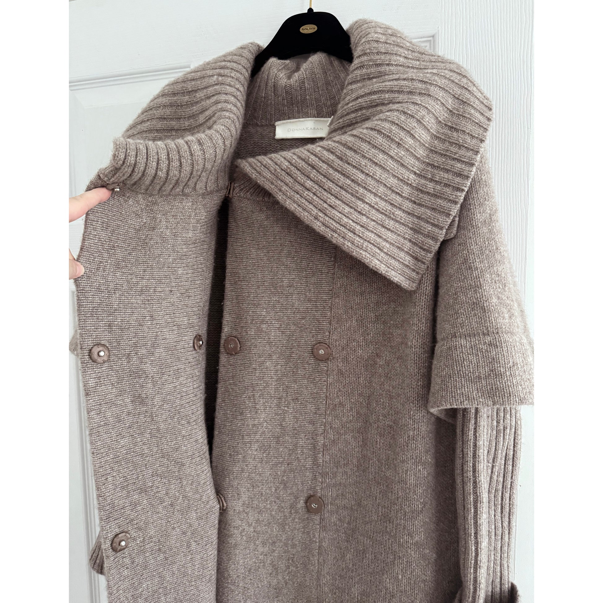 Donna Karan Wool/Cashmere Cardigan/Coat, size M/L. Fits true to size (the seller is a S/M who wore it loose). A SERIOUS amount of coziness packed into one garment - for real!! Approximately 33 inches from shoulder to hem. Approximately 25 inches armpit to armpit (make sure it's will still fit loosely though). 70% wool, 30% cashmere. Lightly worn and in very good condition. Originally over $1500CAD, and selling here for $175CAD!