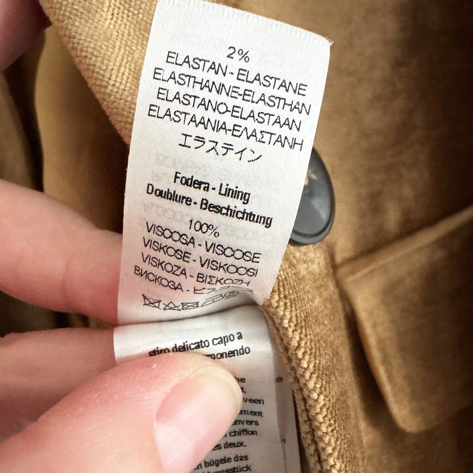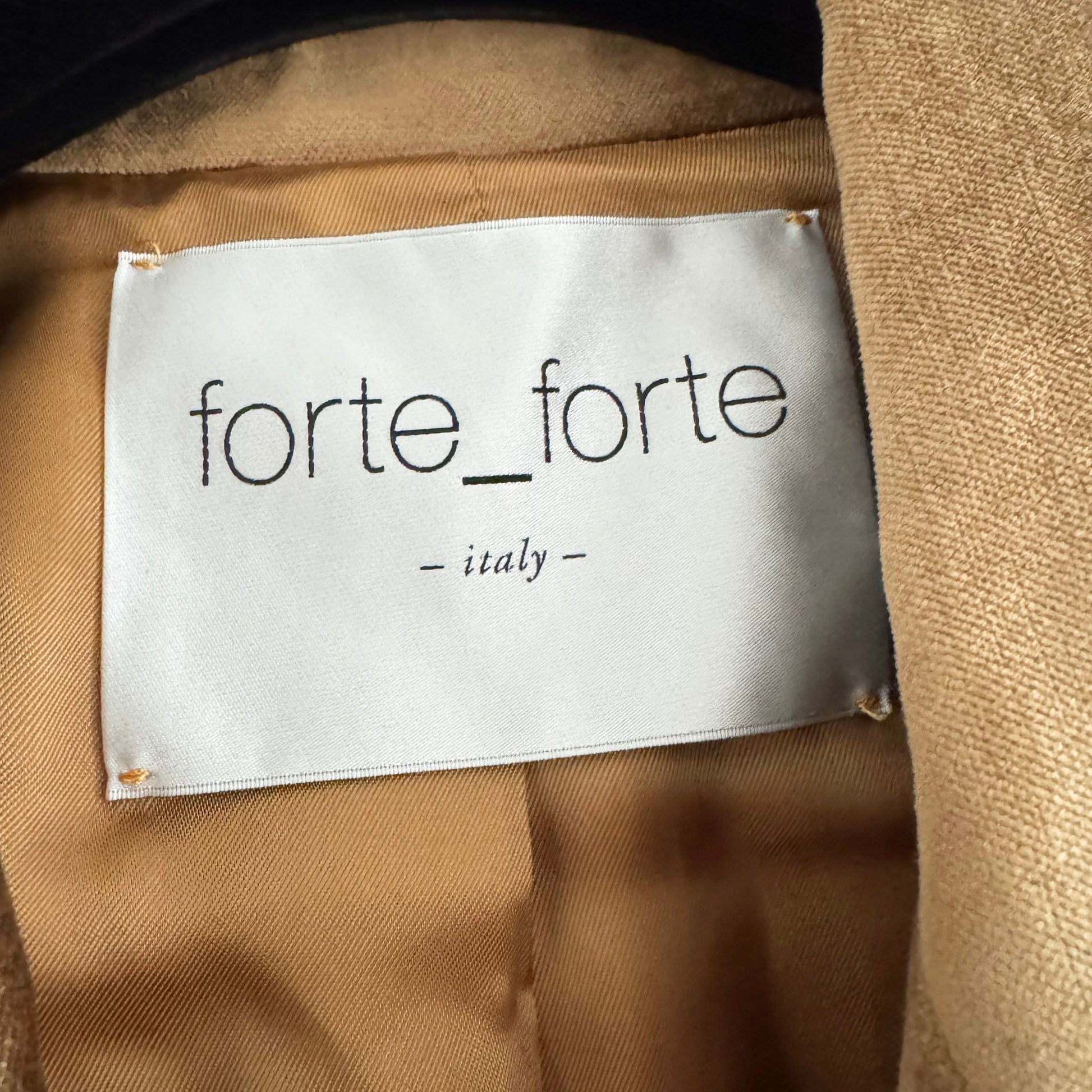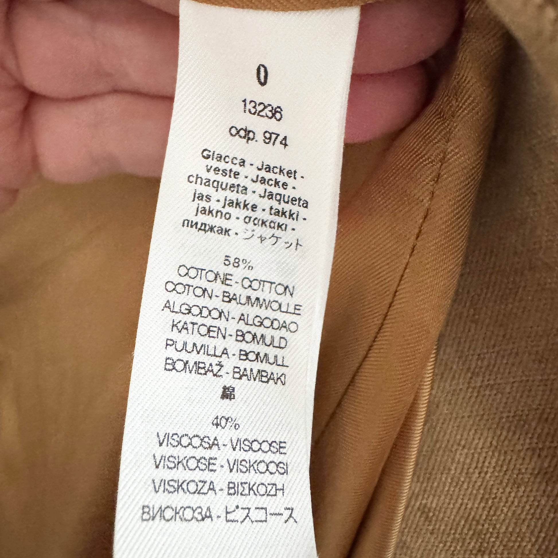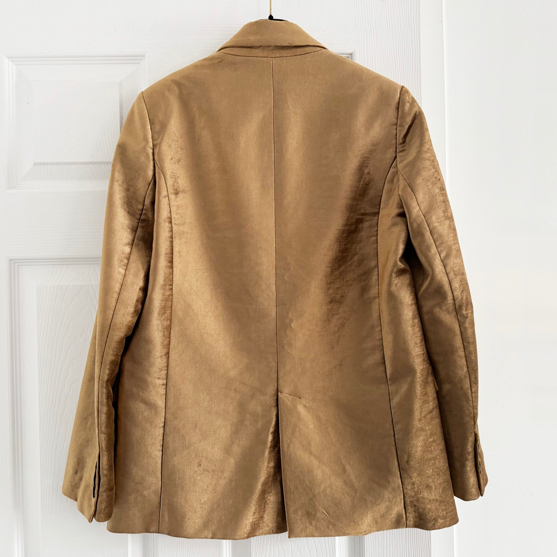 Forte.Forte Stretch Velvet Blazer in Gold, size "0" (XS). So luxurious - an absolutely incredible piece for evening! This Italian brand has a cult following for a VERY good reason - it's so good - luxurious, cool - but low key - and the fabrics are amazing. Adventurous, but in a wearable way. Style this alone, or with the matching pants for a full look. 28 inches in length. 18.5 inches armpit to armpit. 58% cotton, 40% viscose, 2% elastane. In excellent condition - worn once. Originally around $1100CAD, and selling here for $435CAD!