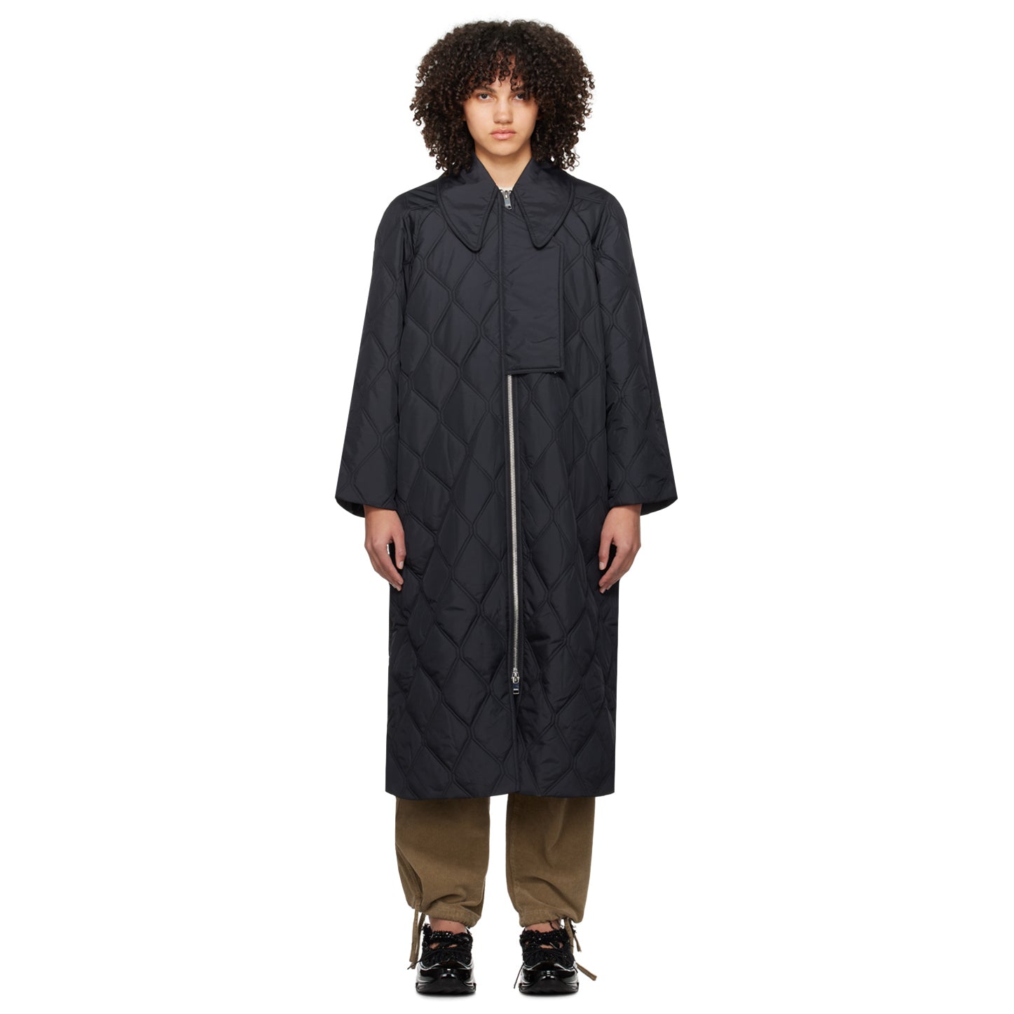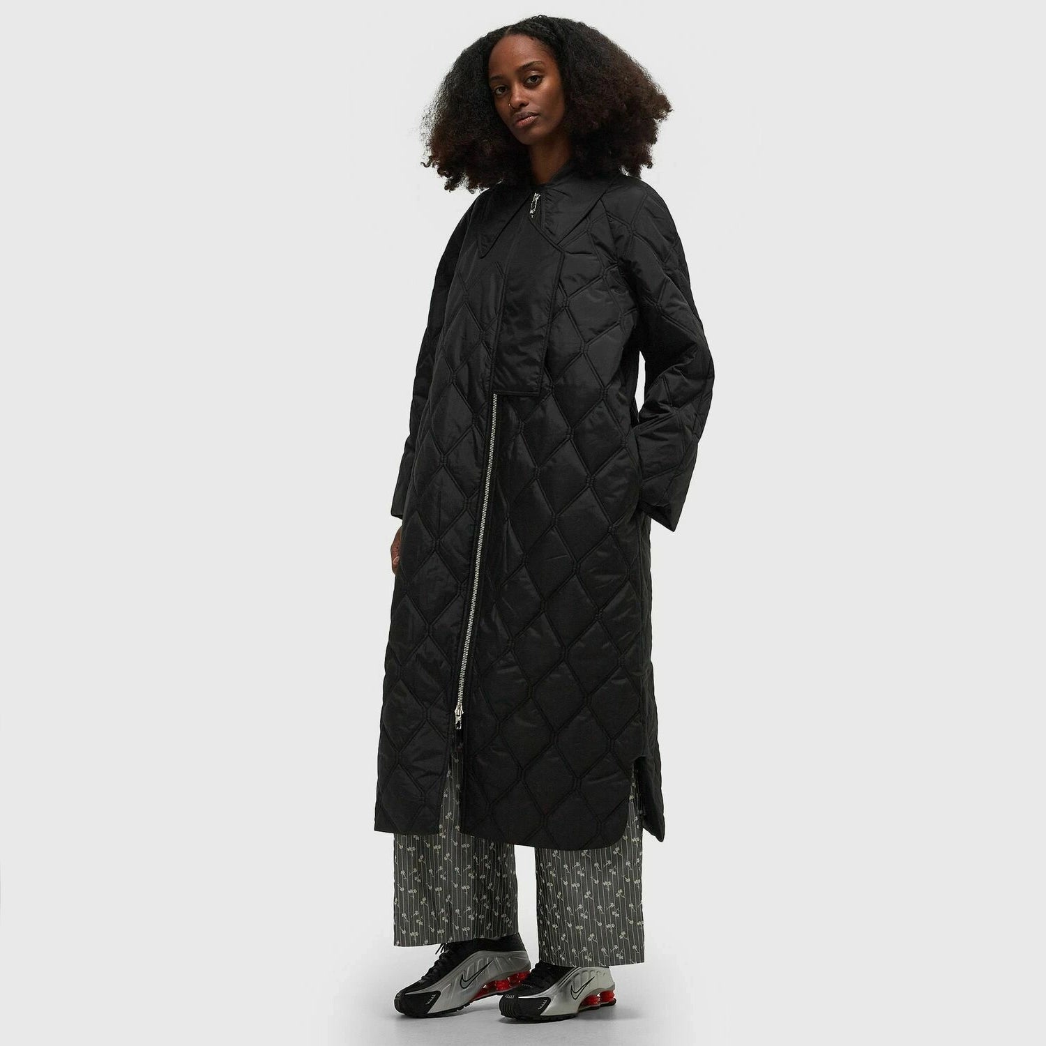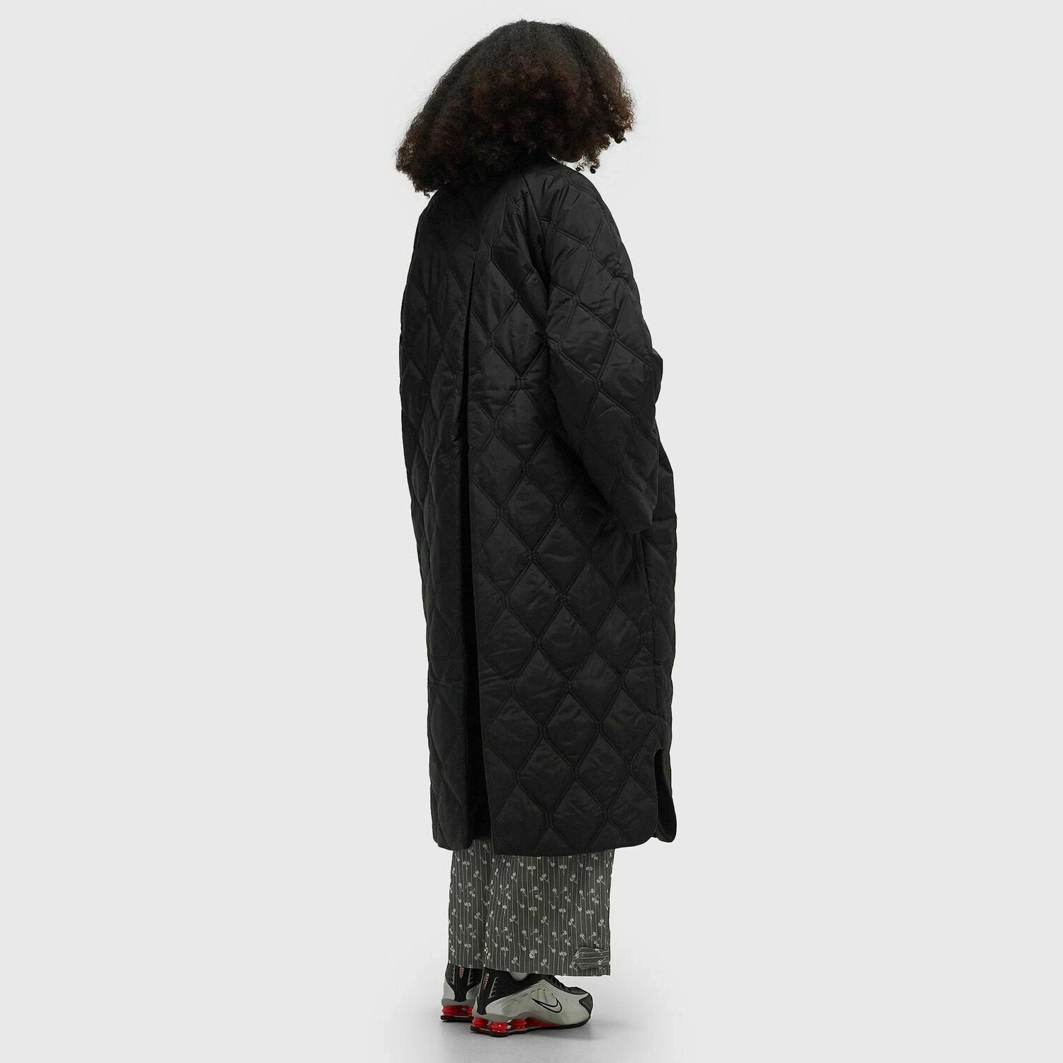 Ganni Quilted jacket in Black, size 36. Fits like a size 6 ish, for an oversize fit. An awesome lightweight jacket for transitional temps, or layered up for proper cold - but I love that's it's just that little bit more feminine than your usual quilted puffer jacket! This Danish brand does feminine in such a playful fun way - as legions of loyal fans already know. lol 47 inches in length. 23 inches armpit to armpit. 100% polyester. Worn a few times, freshly drycleaned and in excellent condition. Originally $550CAD, and selling here for $265CAD!