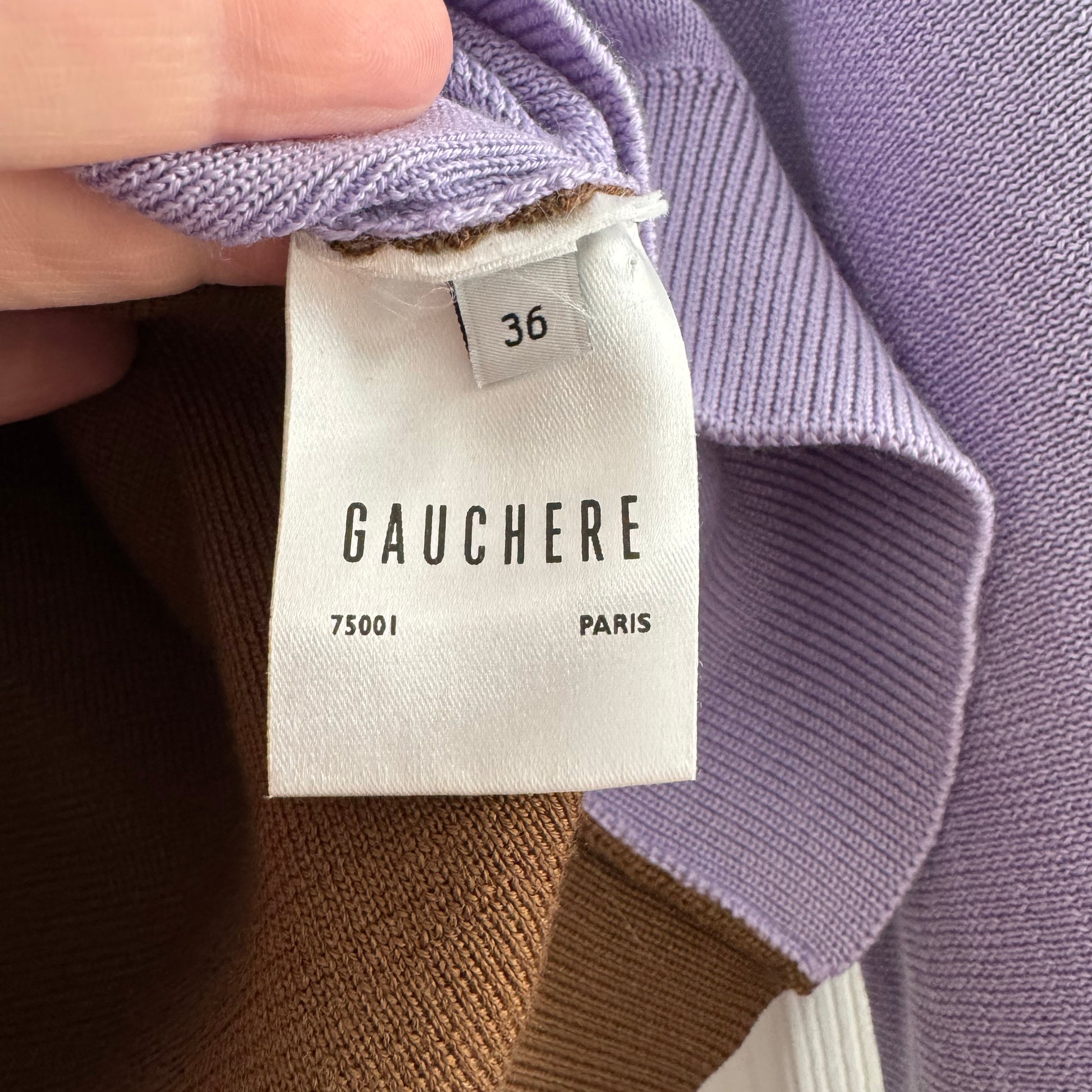 Gauchere Colourblock Merino Turtleneck in Lilac/Khaki, size Small. Fits slim in the waist - could work for XS/S too. An absolutely stunning modern take on colour - the purple contrasted with the brown/khaki of the back half - it's colourblocking done to perfection. The fabric is very smooth and soft - you can feel the quality when you touch it! Pair with a high waisted pant or skirt, or let a little bit of skin show - nothing is sexier than confidence implied when you can see a sliver of skin. 100% merino wool. Made in Italy. In excellent condition. Originally over $1000CAD, and selling here for $195CAD!