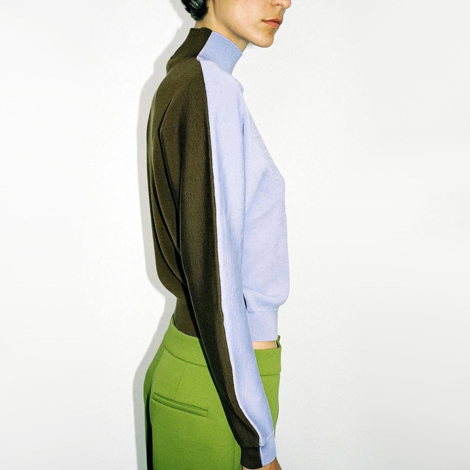 Gauchere Colourblock Merino Turtleneck in Lilac/Khaki, size Small