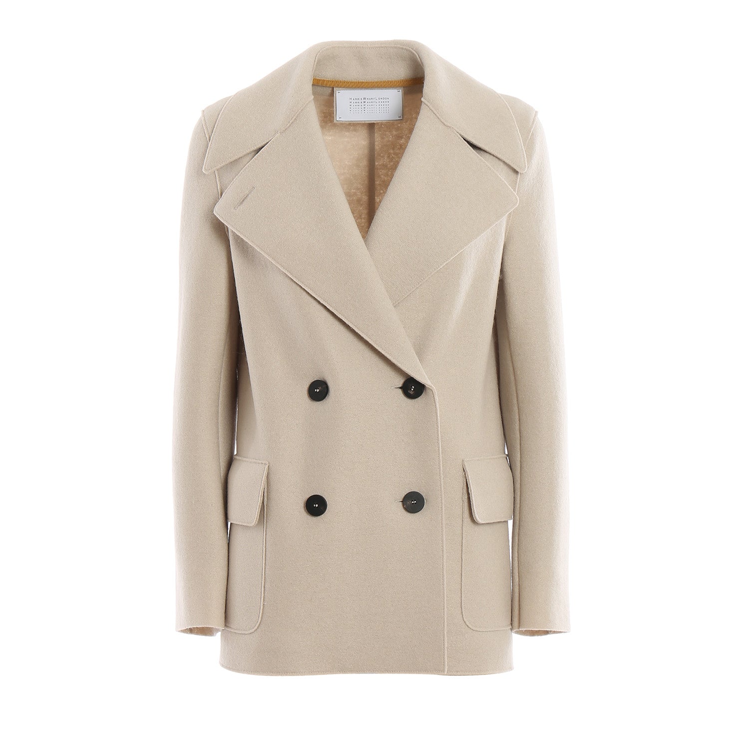 Harris Wharf Double Breasted Wool Pea Coat in Ivory, size 42IT (fits size Small)