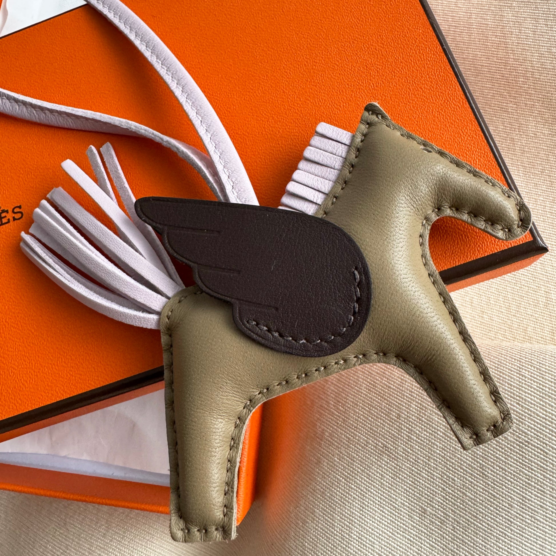 Hermes Pegase Charm in Beige Marfa/ Mauve Pale/ Macassar