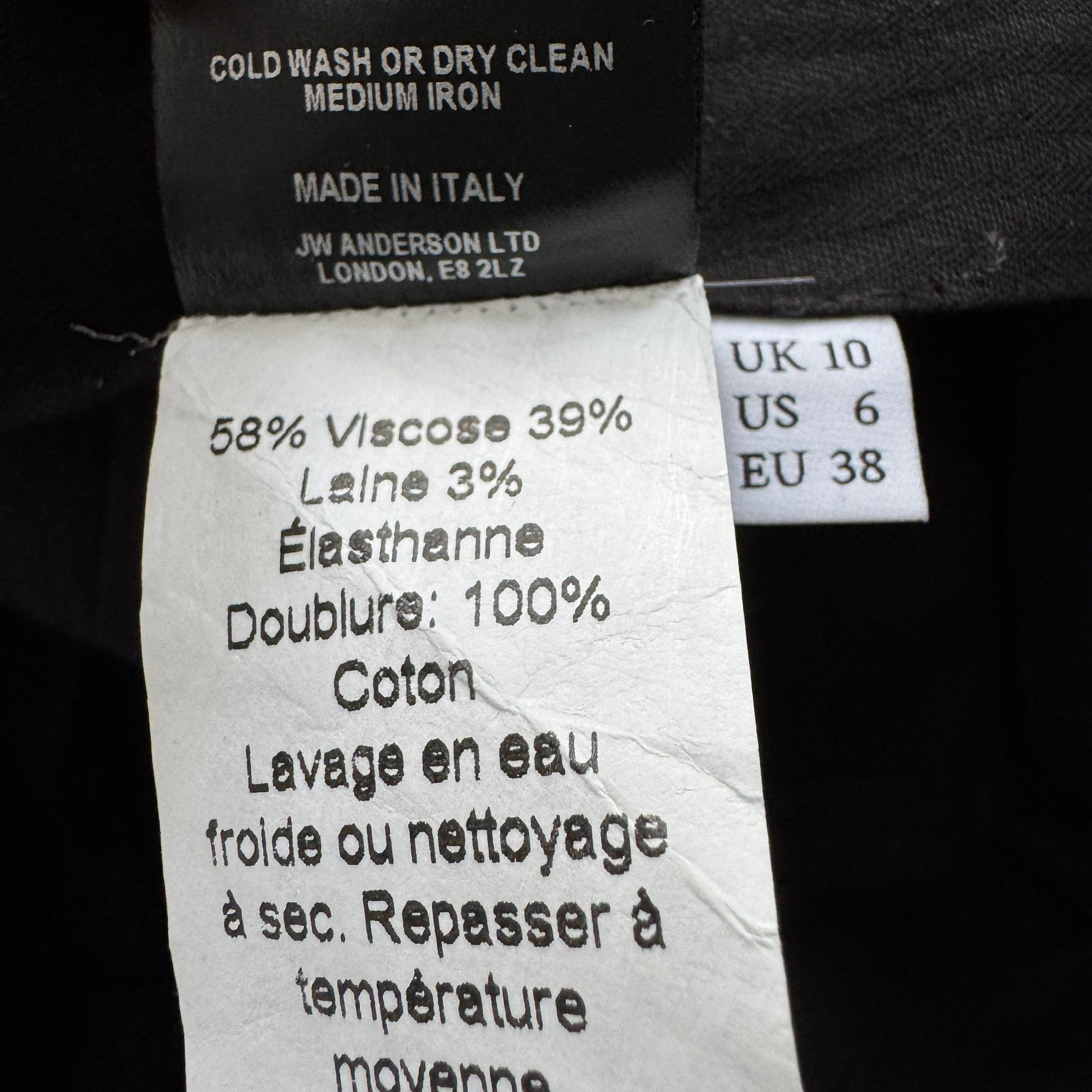 J.W. Anderson crossover Bermuda Shorts in Black, size 6 (fits size 4). Done in a heavy suiting kinda fabric - these offer a little bit of a menswear vibe in a very cool way. Pair with any top, and like, oxfords/brogues, don't you think? Or heels for a sexier vibe. 58% viscose, 39% wool, 3% elastane. Unlined. 32 inch waistband which you probably want to sit a little lower on the waist. 26 inches total length. 17 inch inseam 10 inch rise. Worn a handful of times and in very good condition. Originally $1200CAD, and selling here for $195CAD!