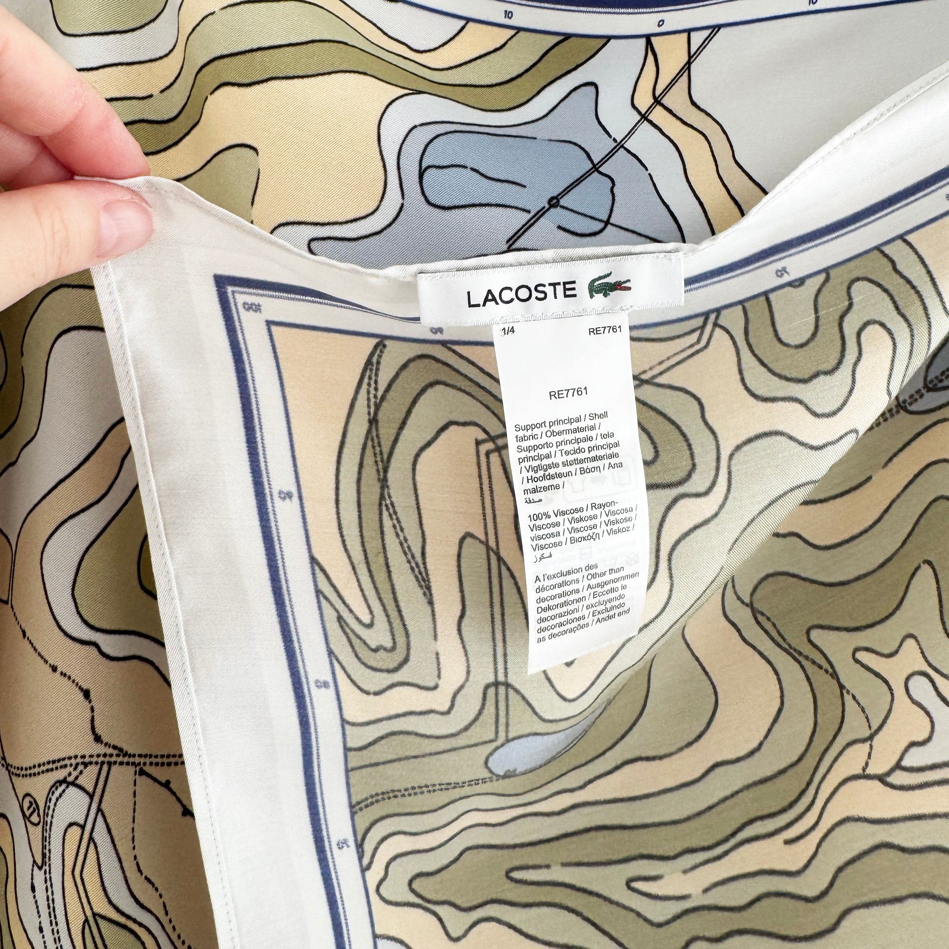 Lacoste "Chantaco" Print Scarf. I'm a real sucker for a map print - and this Springy style is lovely for when you don't want a scarf you need to be too precious with. Little crocodile logo in the corner. 90 cm x 90 cm. 100% rayon. Brand new without tags. Originally $100CAD, and selling here for $40CAD!