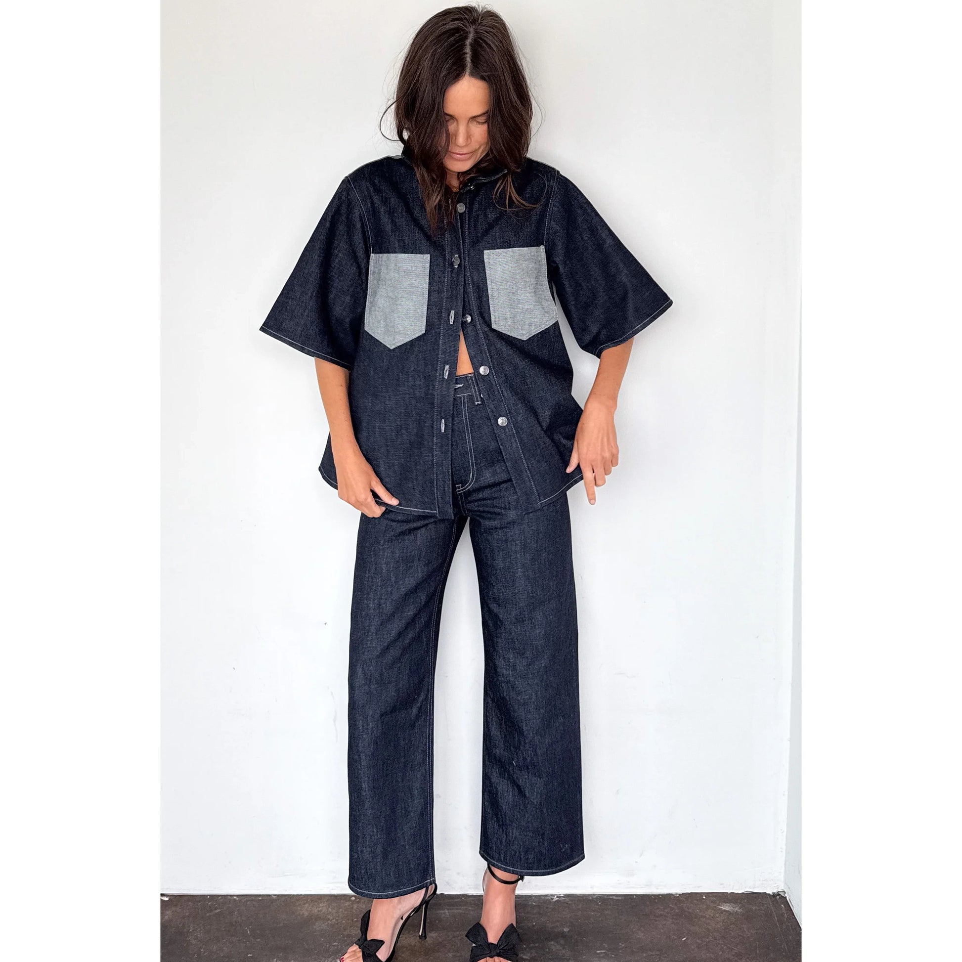Lee Mathews "Leo" Jeans in Dark Indigo, size "4" - this is her size large (the sizing is like 0/1/2/3/4/5) fits like about a size 30 in jeans. This Aussie designer is one of my absolute favourites - clean modern silhouettes and interesting cuts. The contrasting top stitching is a signature of hers, and I do love it. These cropped jeans are done in a structured selvedge denim, and would be great styled with anything from sandals to sneakers. Waistband measures 17.5 inches flat. 12.5 inch rise. 28 inch inseam. 100% cotton. In like new condition. Originally around $625CAD if you buy them in the US, or about $400 if you bought them directly from the brand in Australia, and selling here for $185CAD!