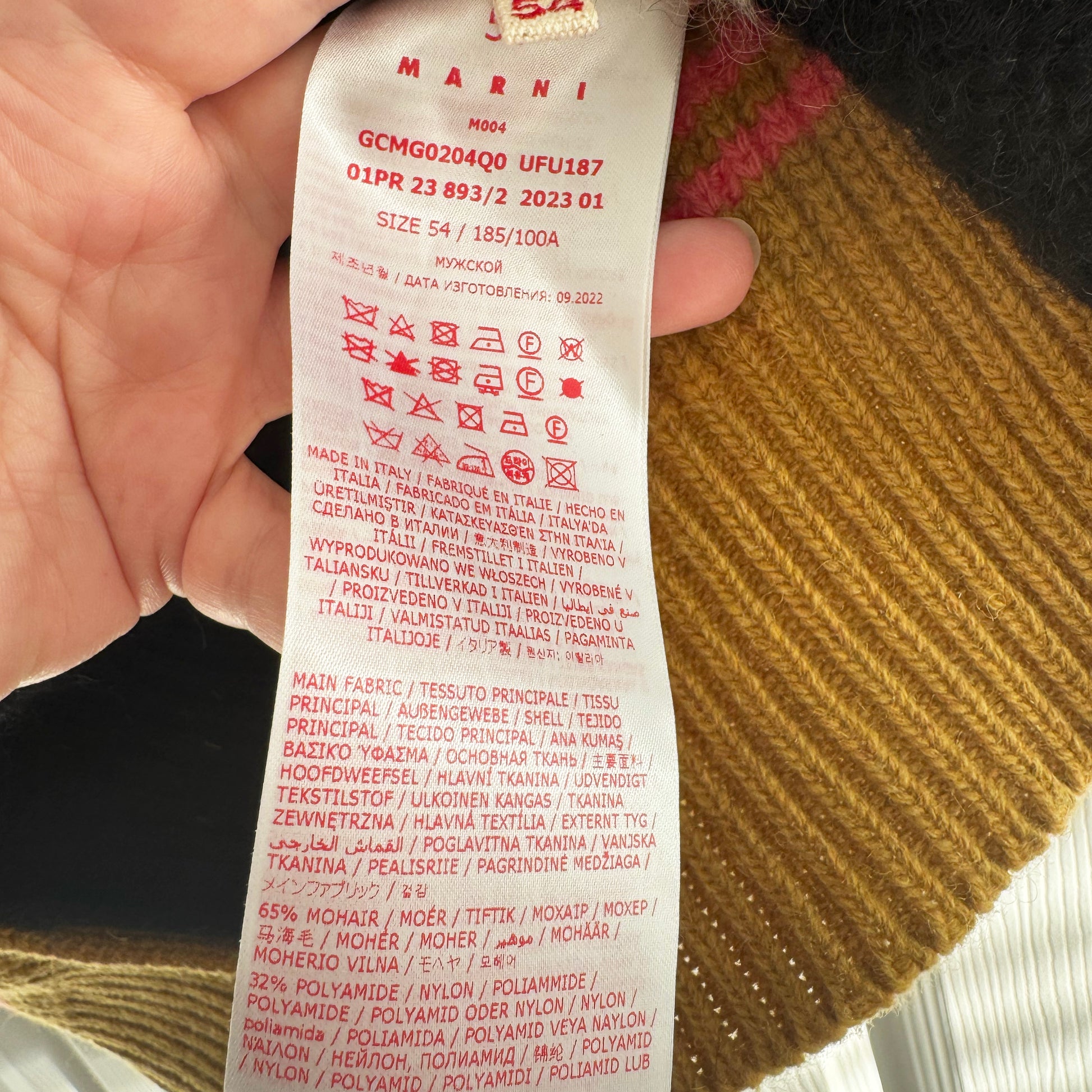 Mens Marni Stripe Vest, size 54 ((fits like a mens large, womens L/XL - or smaller if you want it more oversized). Brand new with tags! Such beautiful texture - very playful in classic Marni style. Layer over a button down or a tee shirt in cooler temps - it is a bit sheer in the front but does look great worn aloneDone in a contrasting knit fabric - both contrasting colours and weaves! The front is a looser knit, slightly sheer, and the back is a denser weave. 28 inches in length. 25 inches armpit to armpit. 65% mohair, 32% polyamide. Originally around $1000CAD, and selling here for $235CAD!!