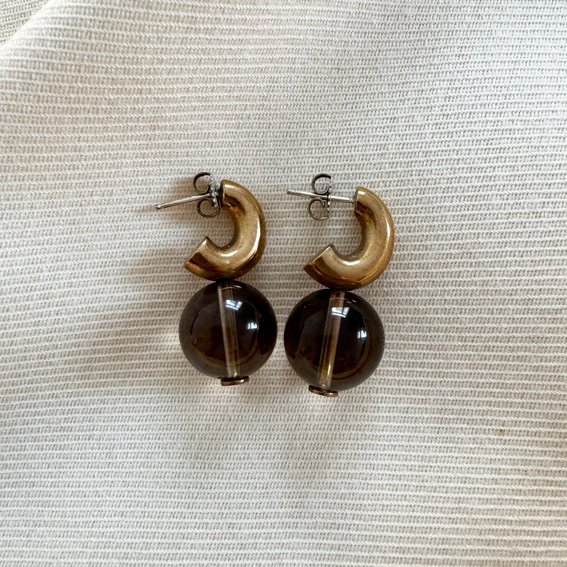 Modern Weaving C-Curve Earrings in Smoky Quartz