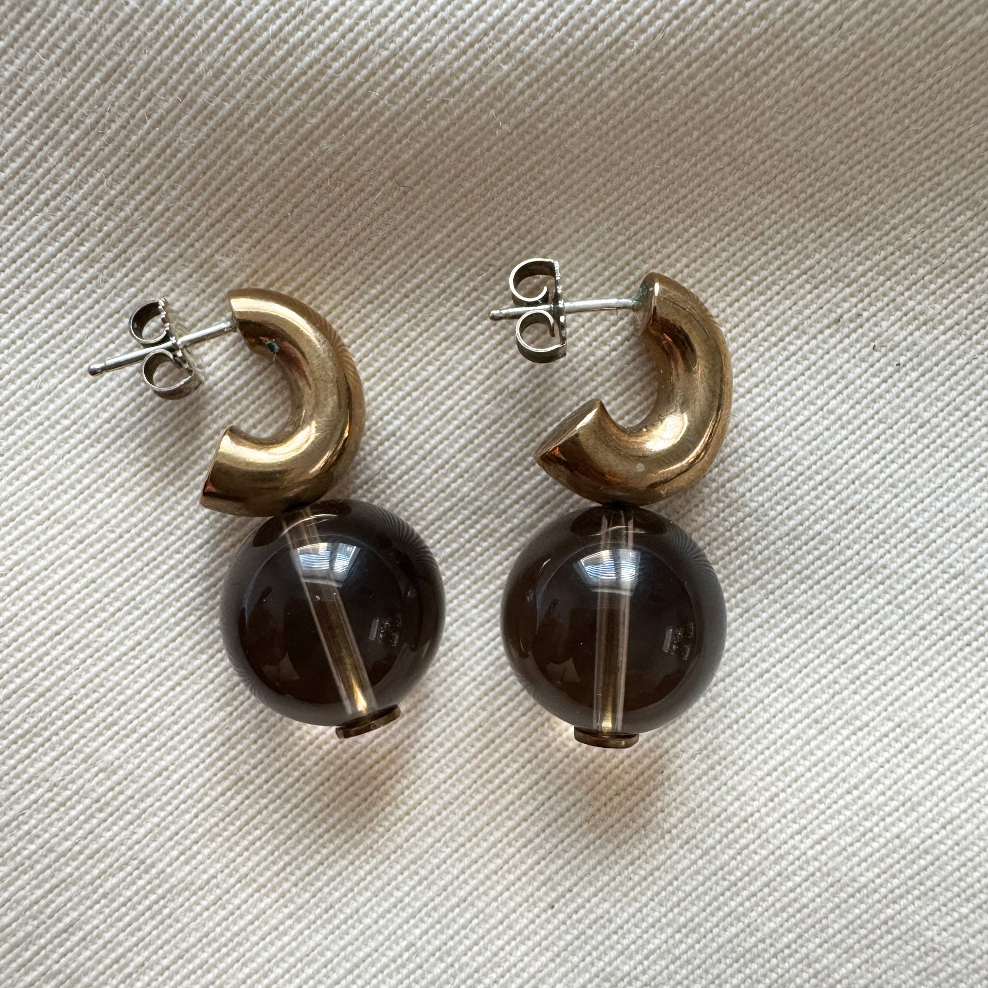 Modern Weaving C-Curve Earrings in Smoky Quartz. Such a cute, modern little earring for day or evening! Smoky Quartz Stone on Bronze with Sterling Silver Posts and Ear Nuts. Drop Length - 3/4". Worn only a few times and in very good condition. Currently retailing on the brand's site for $226CAD, and selling here for $75CAD!