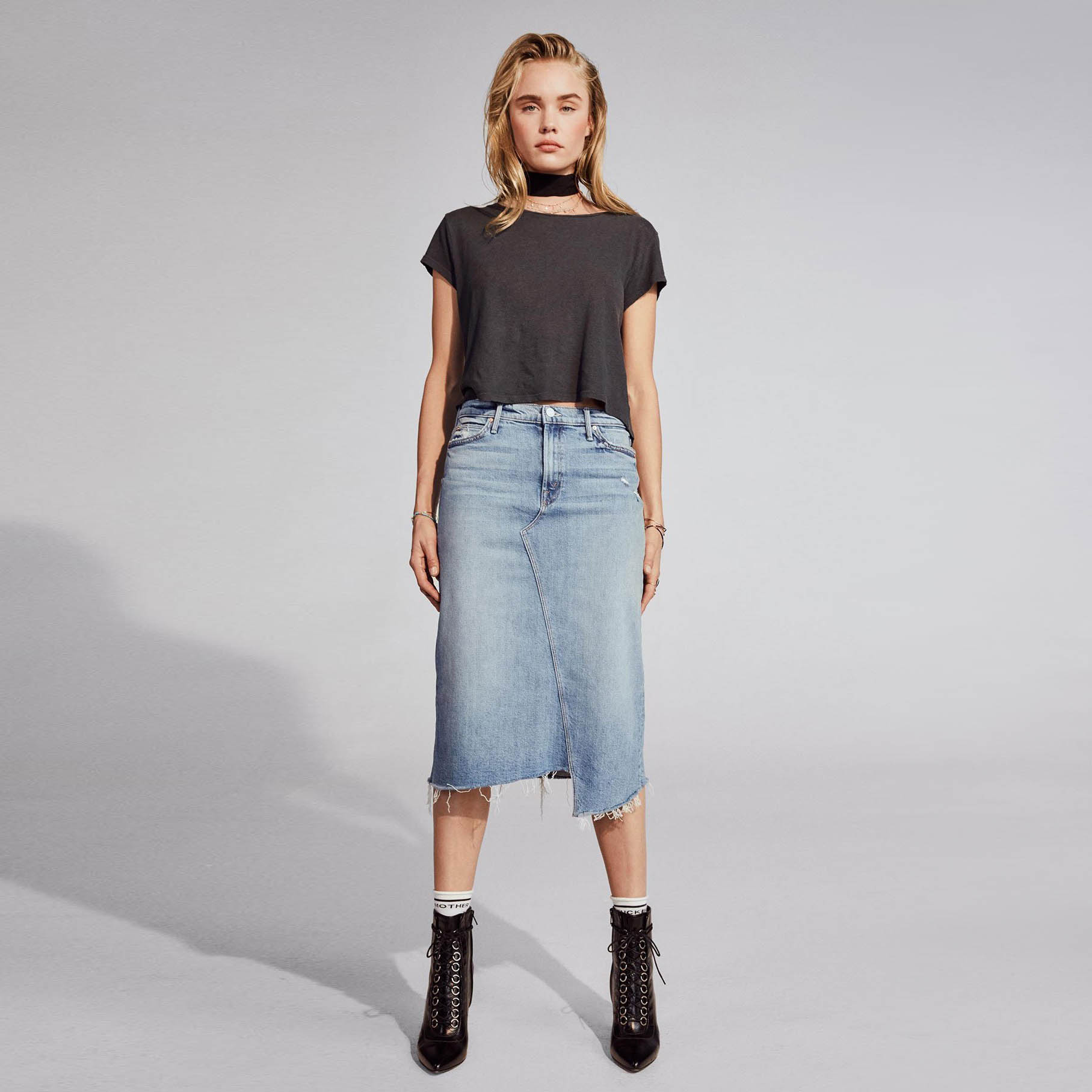 Mother Denim "A Step Midi" Denim Skirt in "Misbeliever", size 26