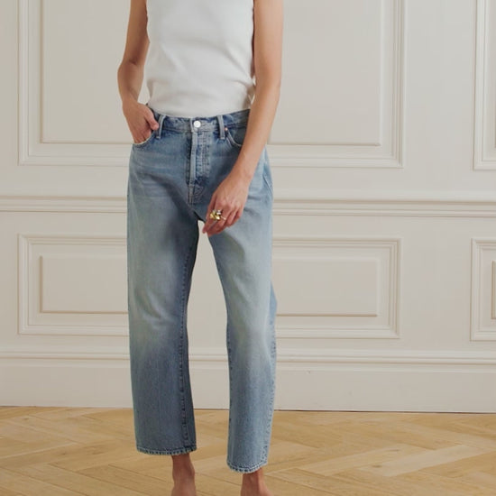 Mother Denim "The Ditcher Hover" Jean in "Ain't my first rodeo", size 29. Fits a little comfy to size, for that slouchy vibe. Brand new with tags! A straight leg cropped jean with very minimal distressing - a wardrobe staple for that laid back feel. Cute with a ballet flat, cute with that Marant western boot too I think! Button fly. 11 inch rise. 29 inch inseam. 34 inch actual waistband. 100% cotton. Originally $350CAD, and selling here for $165CAD!