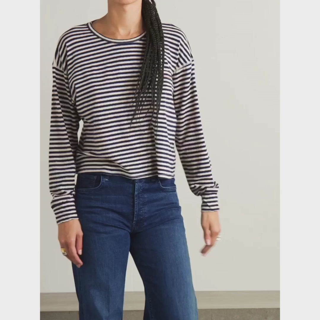 Mother "Dugout Scoop Pocket" Striped Tee in Navy/White, size Small