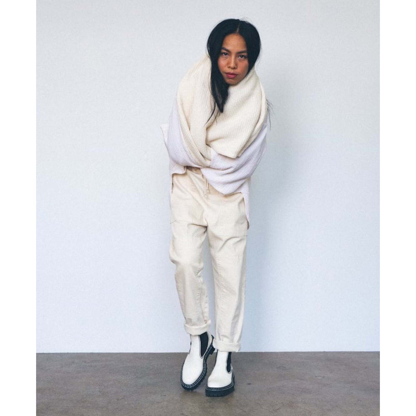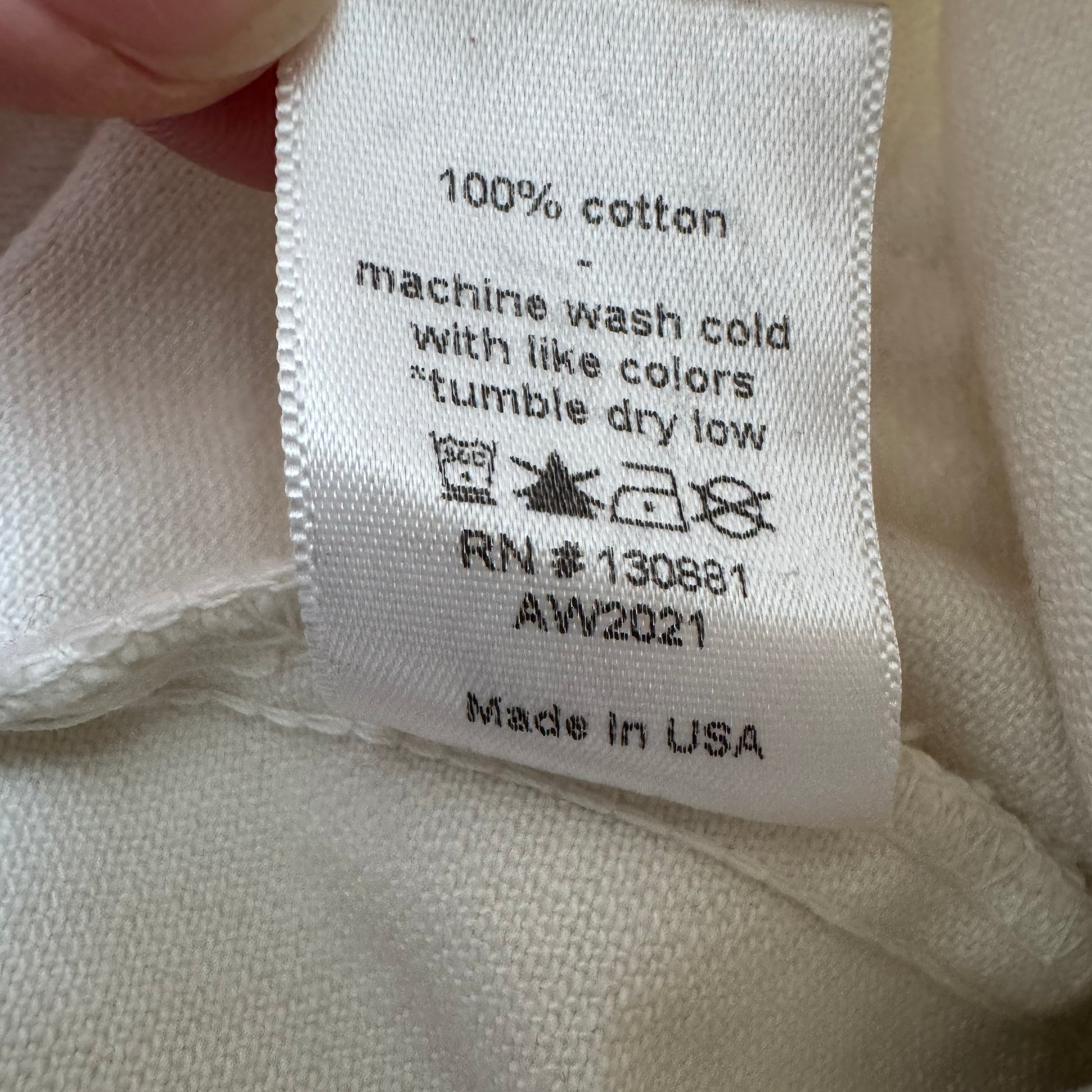 Nico Nico "Bruno" patchwork pant in off-white, Size Medium. Fits true to size. Brand new with tags! An absolutely stunning casual pant - utilitarian details in a luxurious cotton that's both structured and soft at the same time. Great if you love this colour but prefer a more sturdy weight to fight the see-through factor. Elasticated back half of the waist for comfort. 31 inch waistband, unstretched - stretches to a max of 40 inches, and can be drawn in with a drawstring at the front if you want them tighter. 27 inch inseam, uncuffed. 14 inch rise, but it is a but of a drop crotch, so take that with a grain of salt. 100% cotton. Originally $300CAD, and selling here for $145CAD!