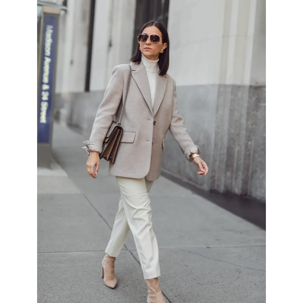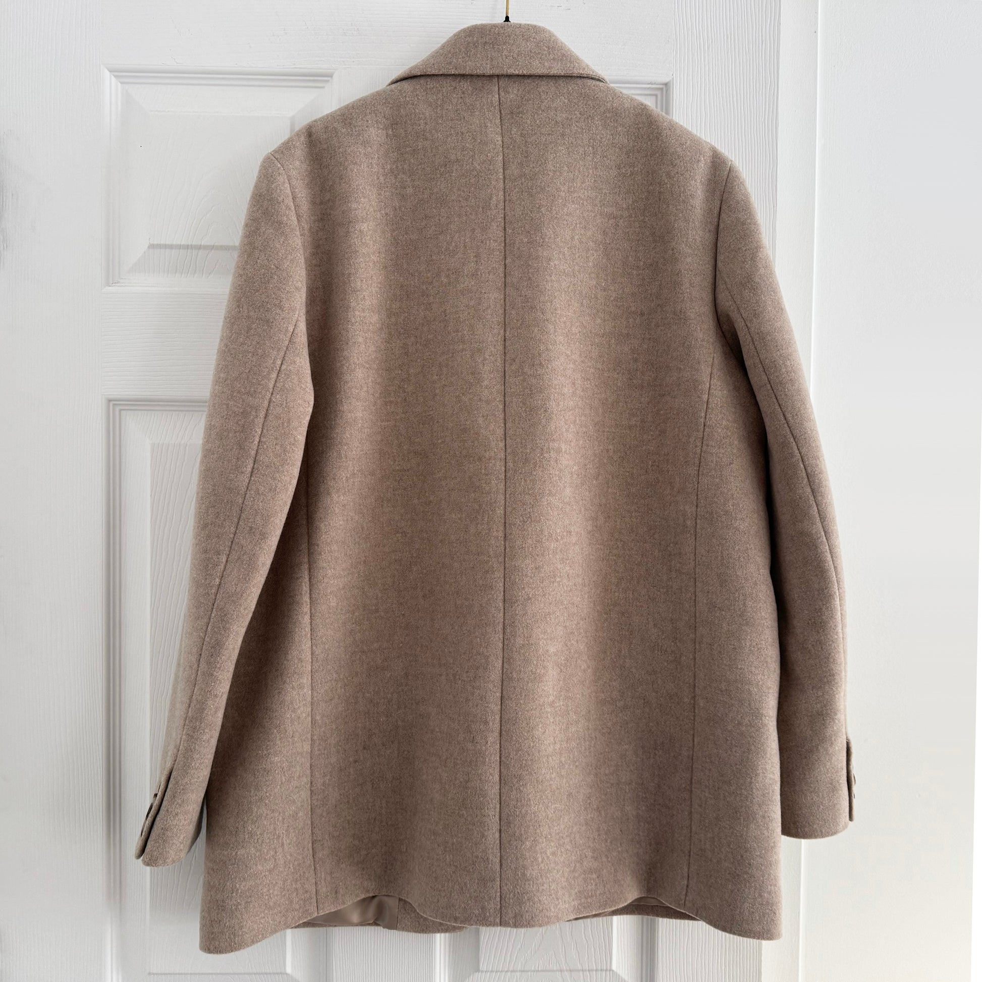 & Other Stories Felted Blazer in Beige, size 44. Fits like size 12. 30.5 inches in length, 23 inches armpit to armpit. A beautiful neutral oversize wool jacket - it walks the line between blazer and jacket to PERFECTION - this is absolutely a piece you could reach for as an indoor piece in winter, and as an outerwear piece in transitional weather. It packs a LOT of punch for the price point! 64% Wool, 32% Polyamide, 4% Other Fibres. In excellent condition. Originally around $300CAD, and selling here for $115CAD!