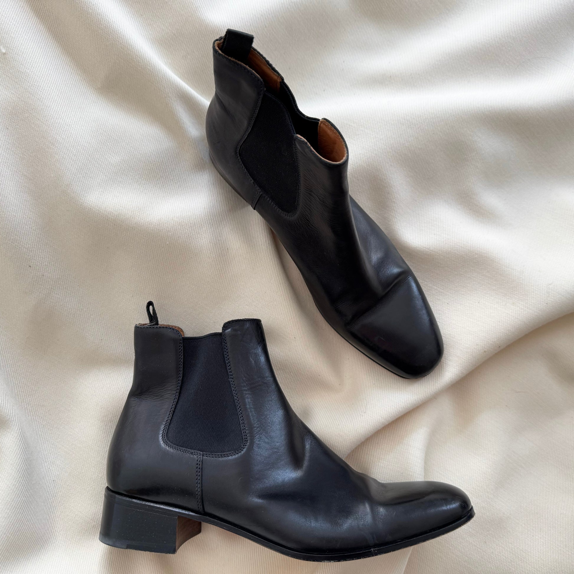 Prada Chelsea Boot in Black, size 39.5. Fits true to size. A classic Chelsea boot - perfect for a 60's in London kinda vibe! Just a bit of a heel, for a tiny bit of a lift. A very classic, beautifully made boot for day or evening. Worn maybe twice - in great condition but does not come with original box or dustbags. Originally around $950CAD, and selling here for $215CAD!