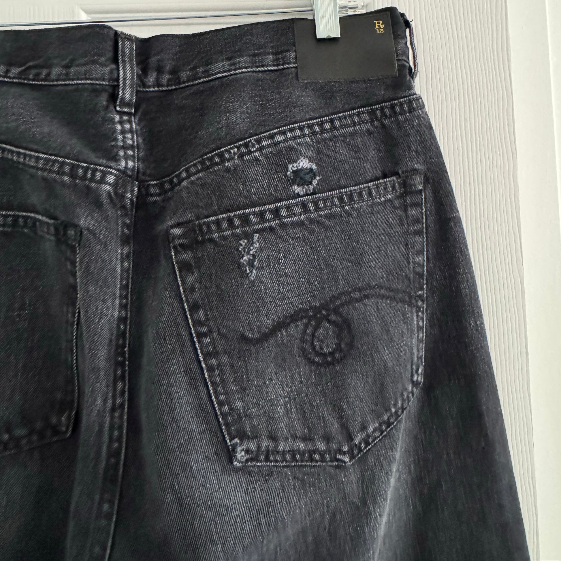 R13 Crossover jeans in Jake Black, size 27 (fits 28)