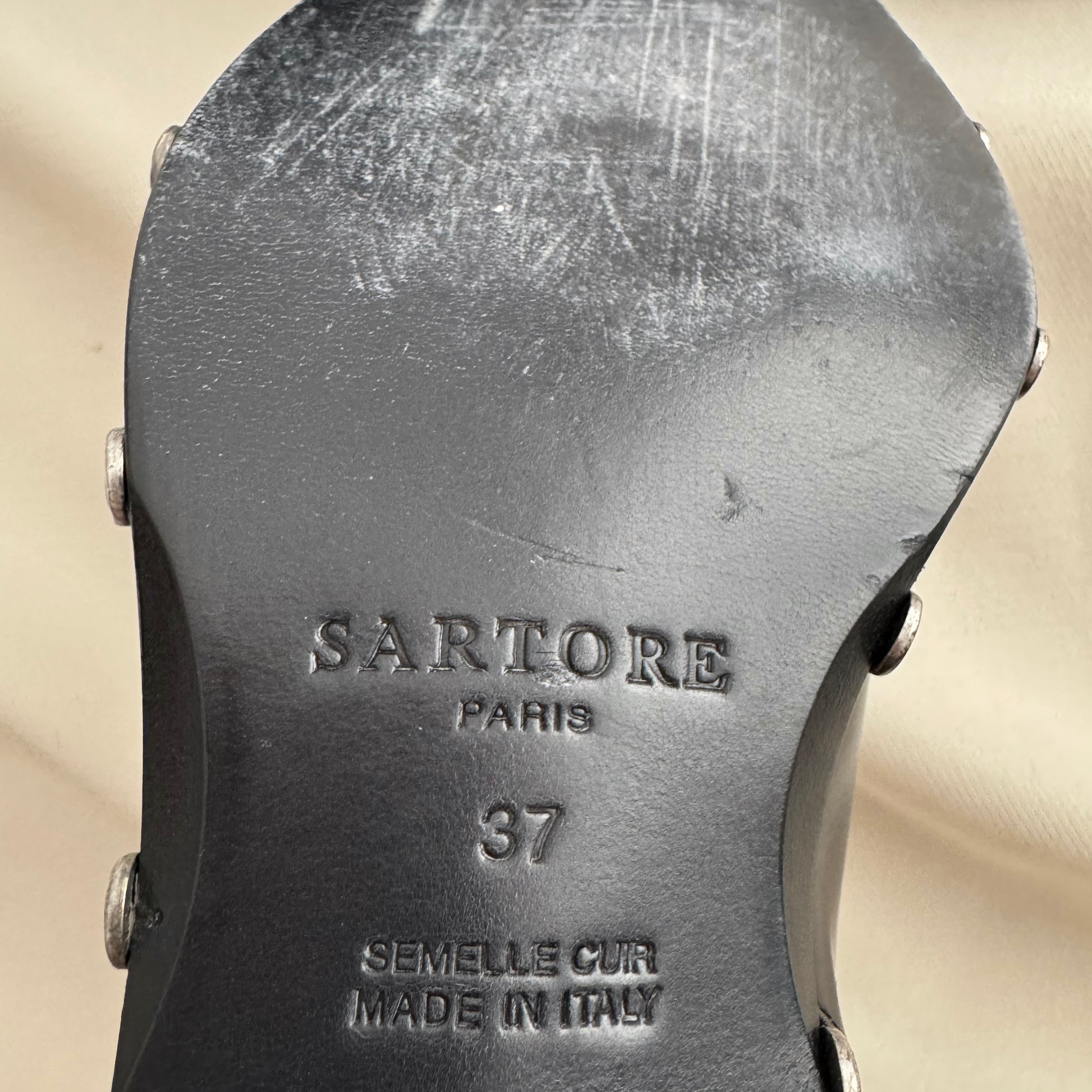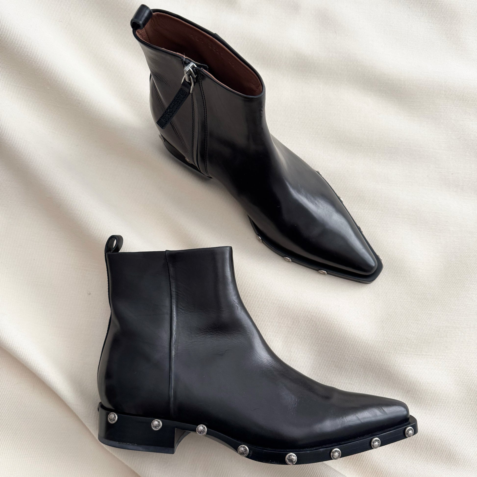 Sartore Pointed Toe Boots with Studded Sole in Black, size 37