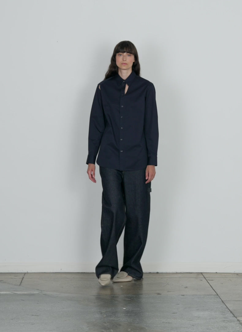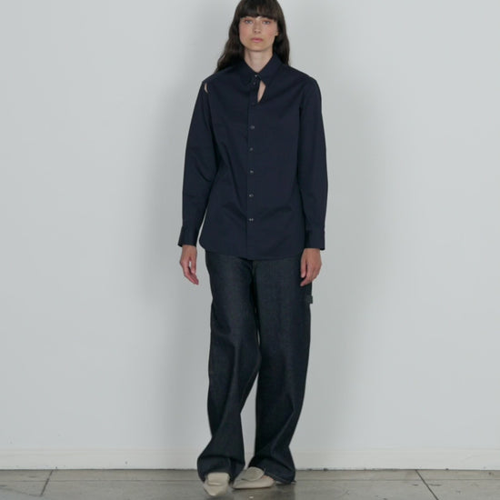 Tibi "Charlie" Eco Poplin Cut Out Shirt in Navy, Size Small