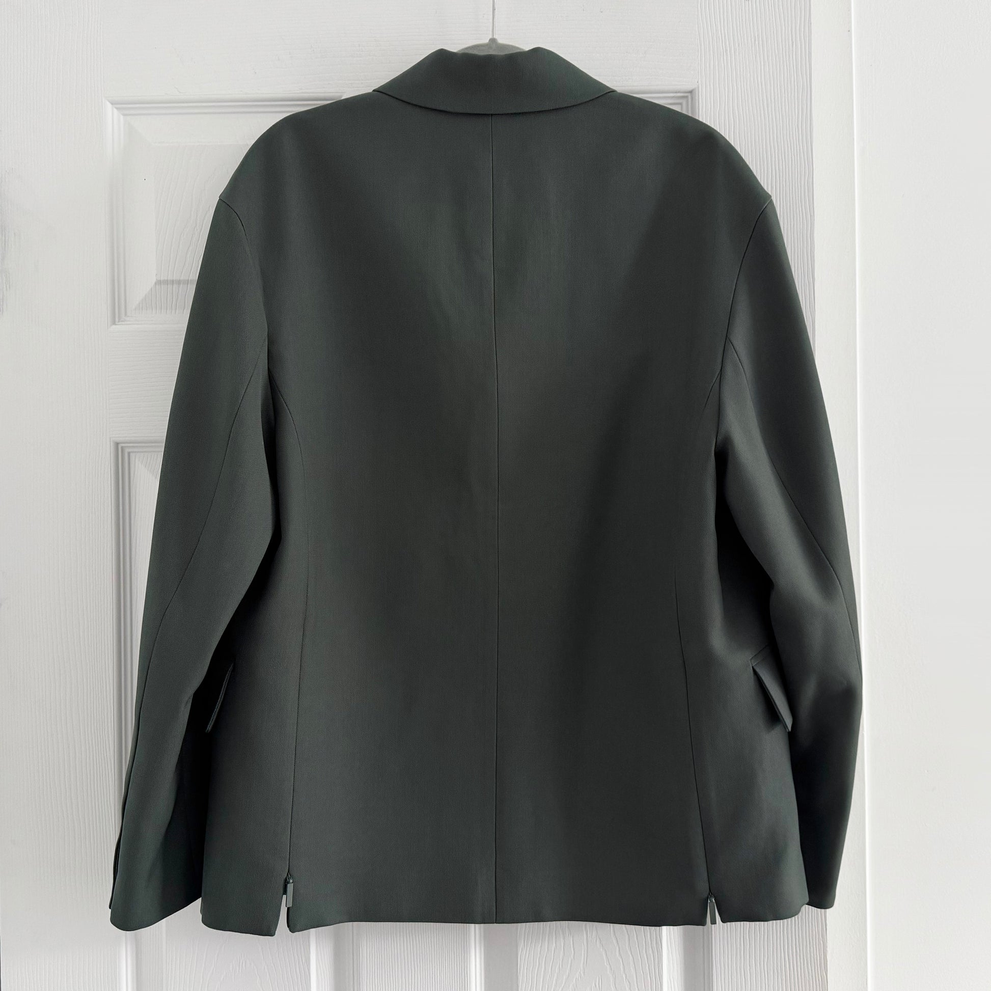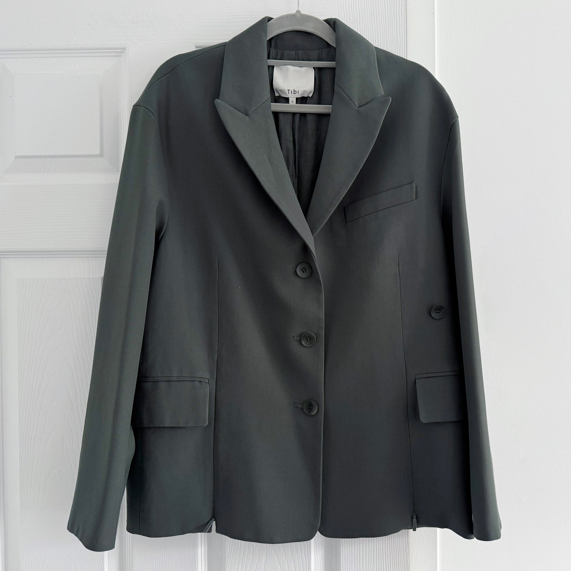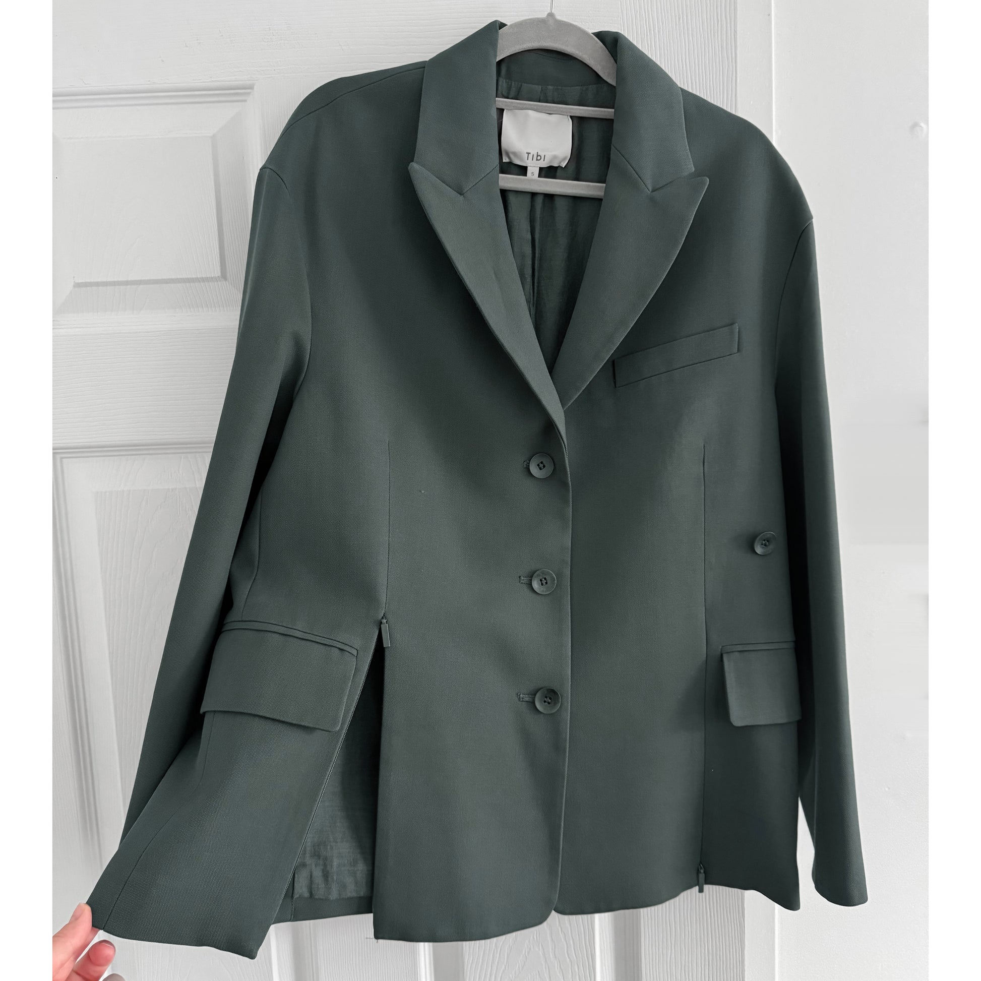 Tibi Grain de Poudre "Liam" Blazer in Grey Pine, size Small. Fits oversize by design - stick with your usual size to maintain the oversize vibe - but, yeah, there is wiggle room for sure. Directional, but easy to wear in any season, since it allows for whatever layers you want. The styling options are endless - which is EXACTLY how it's designed - an extra button closure allows you to close it more, and the zippers allow you to do all kinds of stuff from tucking it in or belting it as shown on the model here. Approximately 28 inches in length, and 22 inches armpit to armpit. 100% Wool. Lightly worn and in excellent condition. Originally $1450CAD, and selling here for $565CAD!