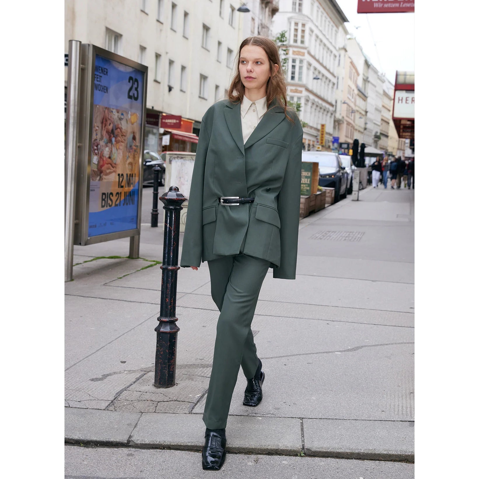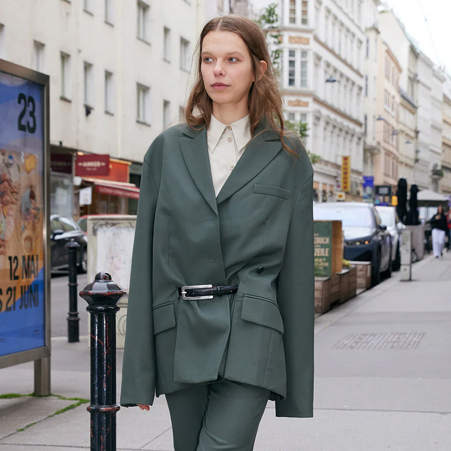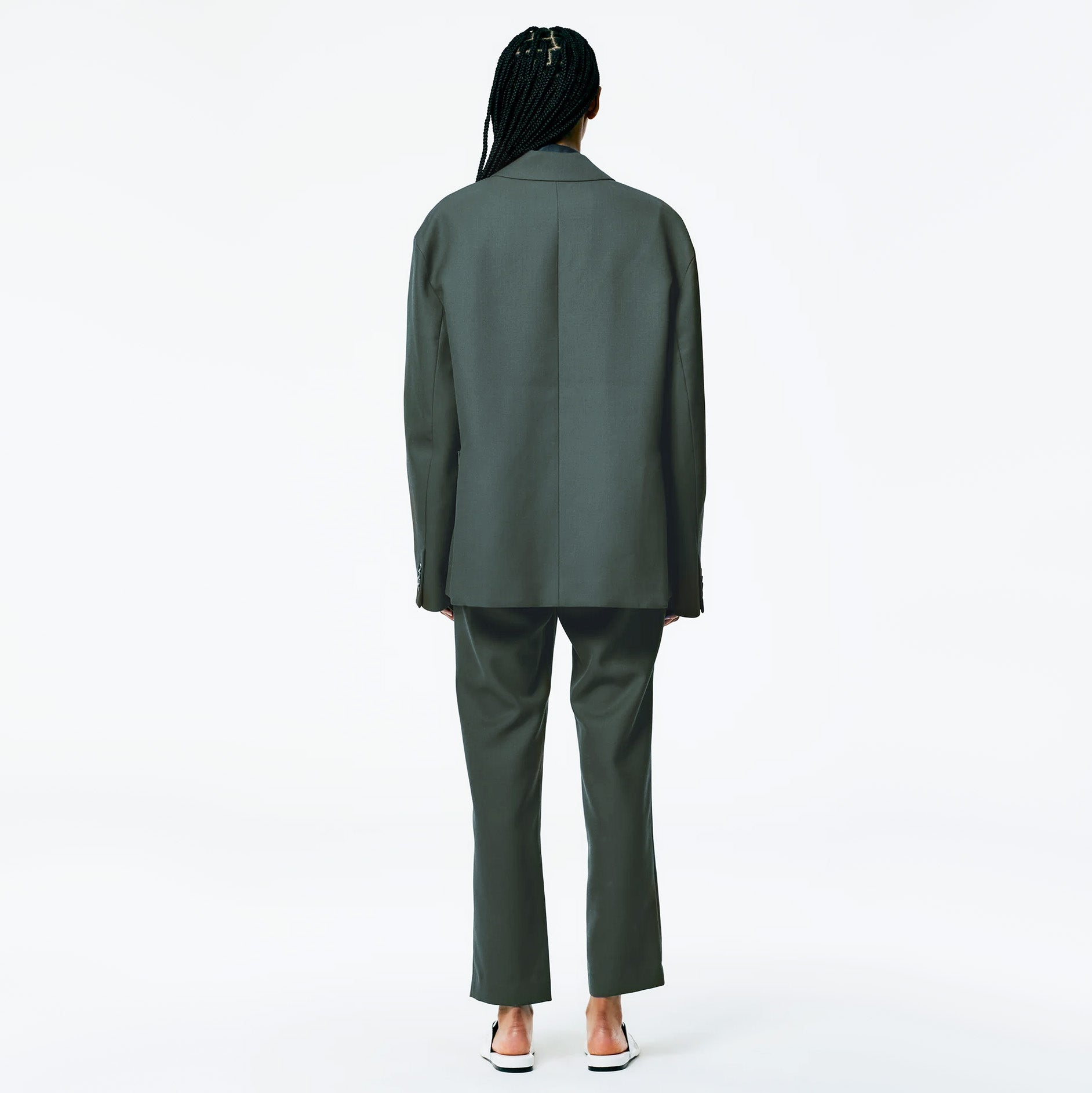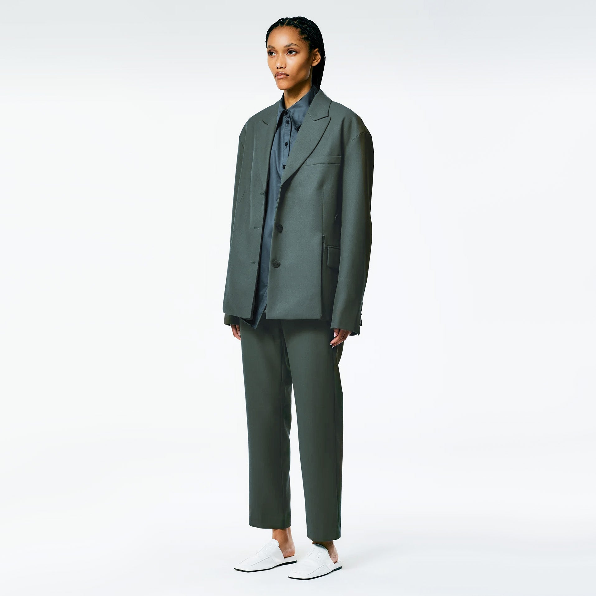 Tibi Grain de Poudre "Liam" Blazer in Grey Pine, size Small. Fits oversize by design - stick with your usual size to maintain the oversize vibe - but, yeah, there is wiggle room for sure. Directional, but easy to wear in any season, since it allows for whatever layers you want. The styling options are endless - which is EXACTLY how it's designed - an extra button closure allows you to close it more, and the zippers allow you to do all kinds of stuff from tucking it in or belting it as shown on the model here. Approximately 28 inches in length, and 22 inches armpit to armpit. 100% Wool. Lightly worn and in excellent condition. Originally $1450CAD, and selling here for $565CAD!