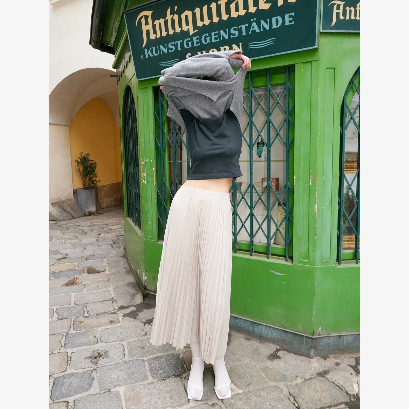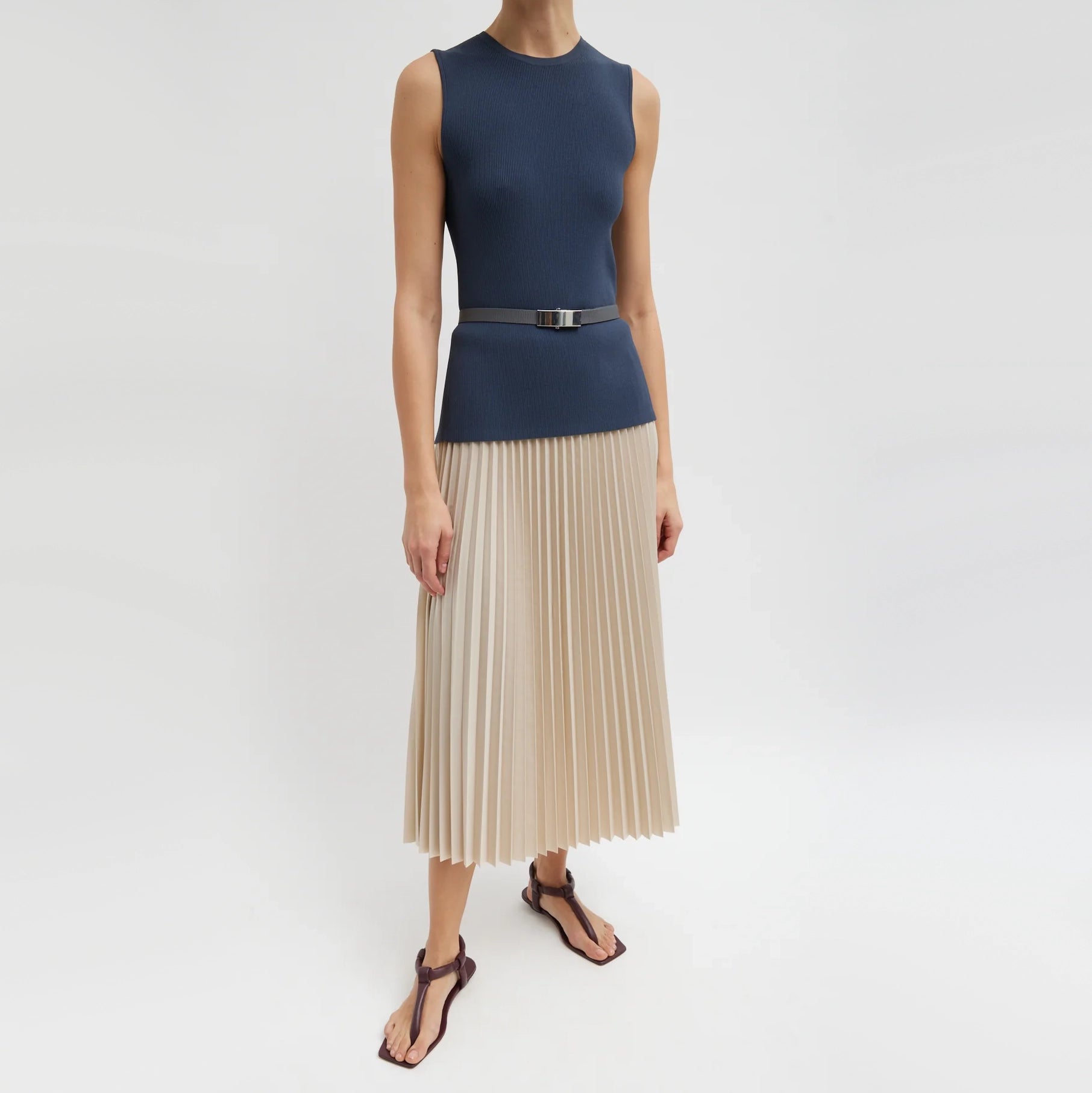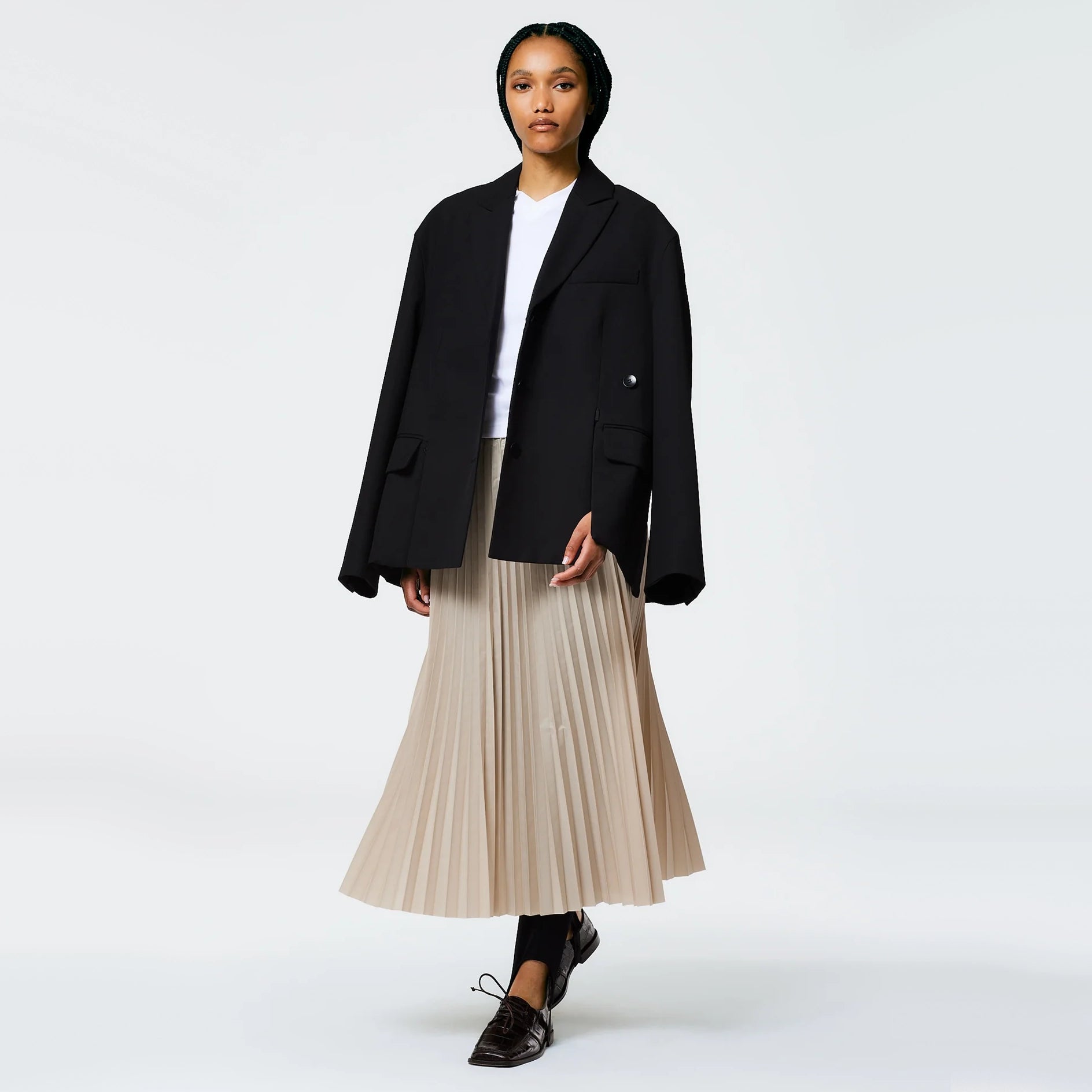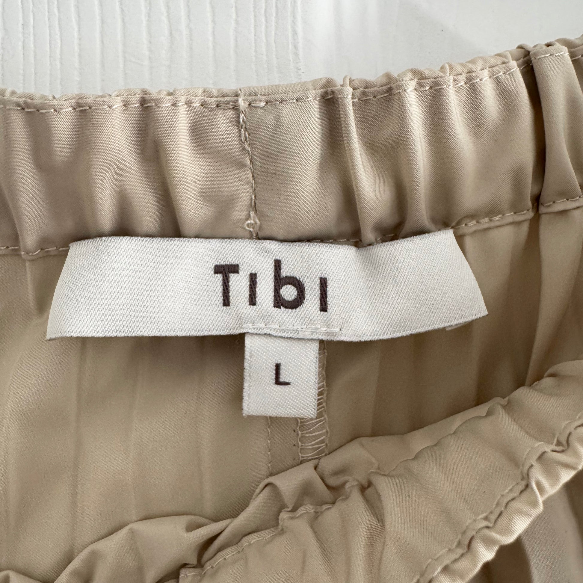 Tibi Italian Sporty Nylon Sunray Pleated Pull On Skirt in Beige, size Large