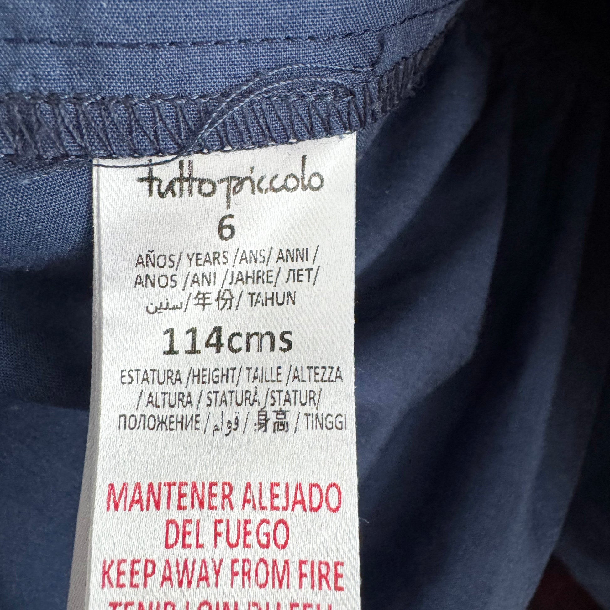 Tutto Piccolo Jaquard Dress with Velvet Trim in Blue/Red, size 6 years. Fits 4/5 years, since it is a European brand. Such a pretty little party dress!! I love the contrasting velvet trim. 22.5 inches in length. 12 inches armpit to armpit. 59% polyester, 38% cotton. Fully lined. In excellent condition. Originally $115CAD, and selling here for $40CAD!