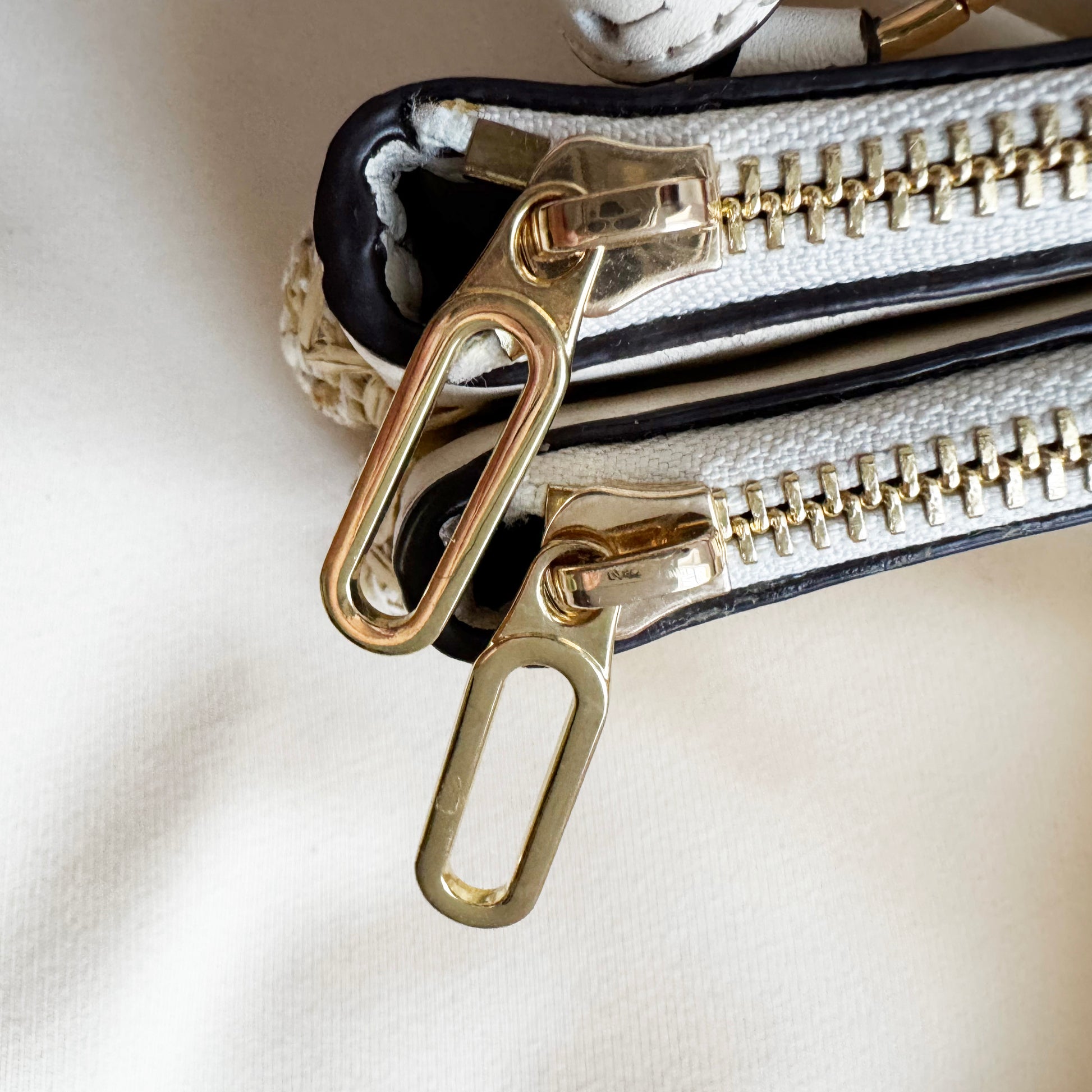 Ulla Johnson "Maya" Raffia Crossbody Bag in Natural. The perfect bag to go with lightweight pretty dresses, and a great one for travelling too since it has the zip closures and removeable crossbody strap. Measures 6.25in / 16cm in height. Length: 10.75in / 27.5cm. Depth: 2.25in / 6cm. Strap drop: 20.75in / 53cm. In excellent condition. Originally $675CAD, and selling here for $325CAD!