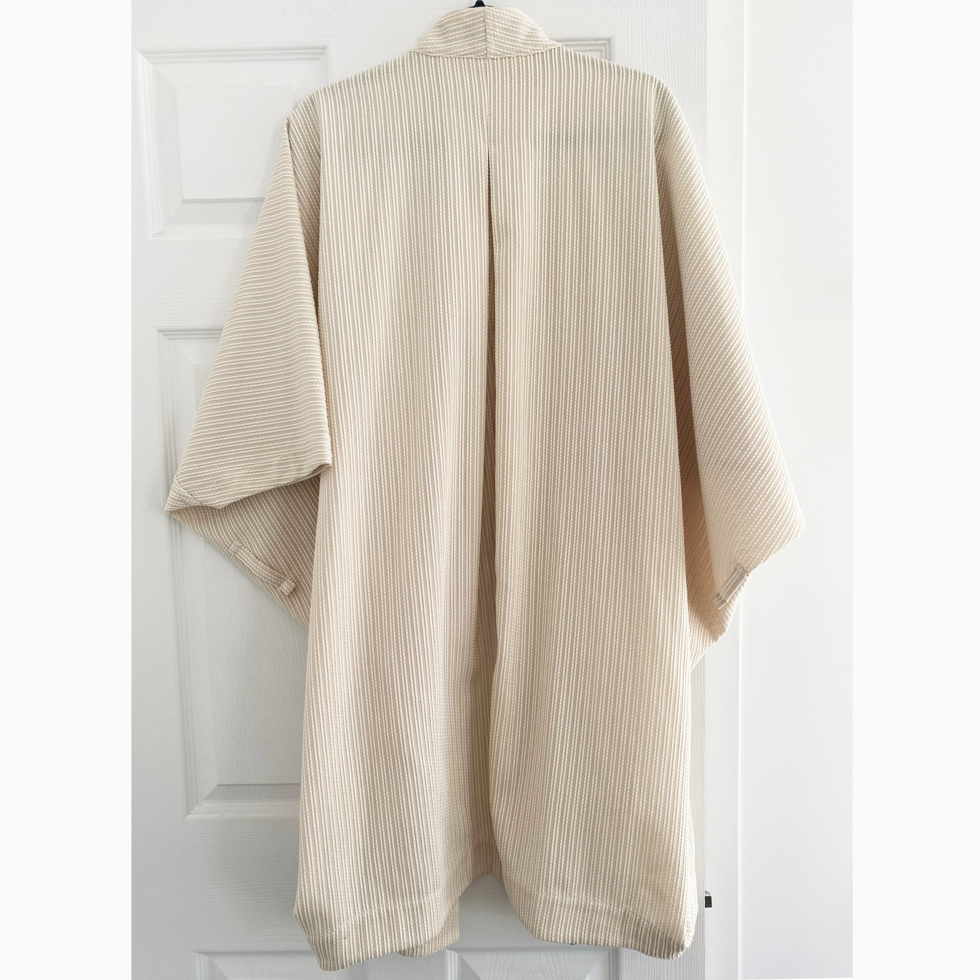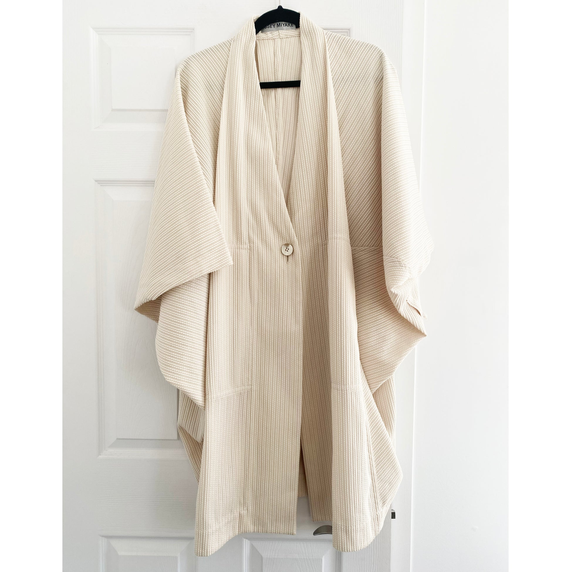 Veste kimono Issey Miyake Sashiko Wrap taille « 2 » - taille unique et super surdimensionnée - convient du M au XL. Un look emblématique de ce créateur japonais : cette veste kimono texturée super luxueuse est un équilibre élégant entre confort et design. Robuste, mais doux au toucher, il est doté d'une fermeture boutonnée sur le devant et la ceinture assortie vous permet de porter la silhouette comme bon vous semble ! 50% coton, 50% polyester. En excellent état. À l'origine 2695$CAD, et vendu ici pour 485$CAD !!